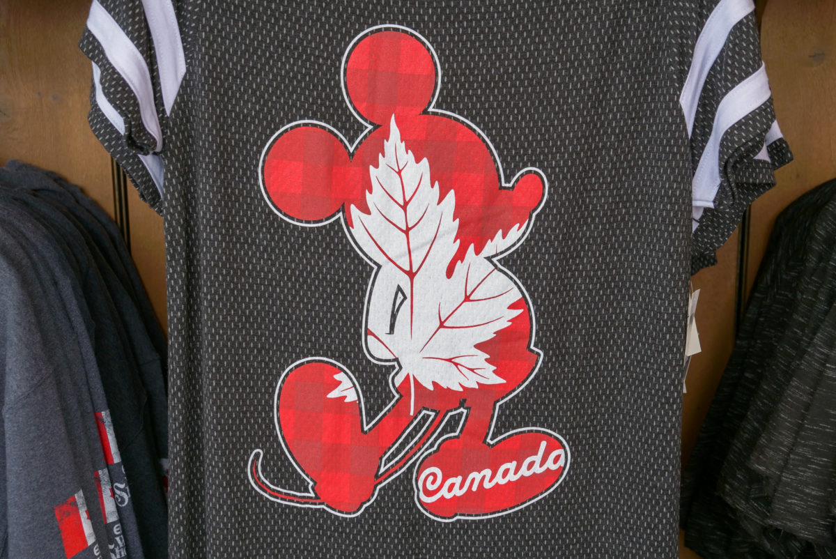 Heading over to World Showcase, we started in Canada today and were rewarded with a new Mickey Mouse shirtdress in the outdoor merchandise stand. The shirt features a silhouette of the boss mouse with a flannel pattern and maple leaf overlay.