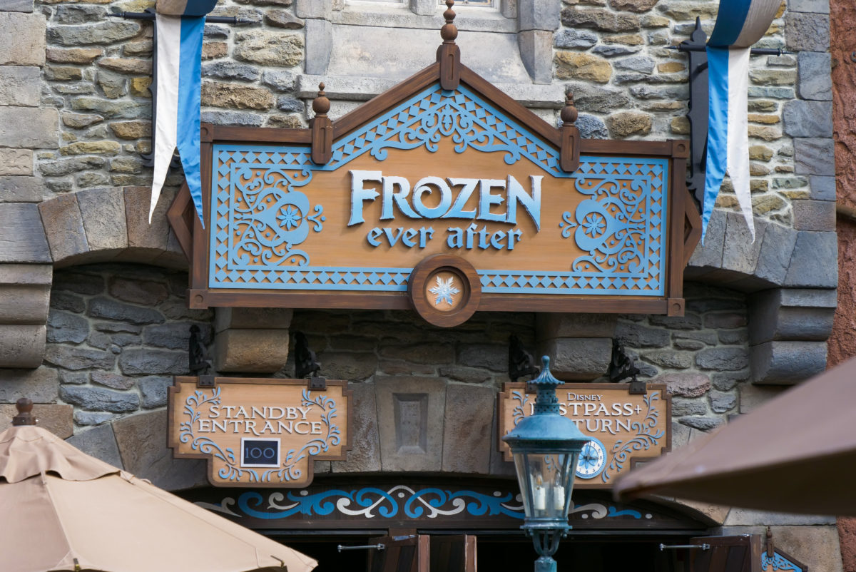 Perhaps a bit more rain would have broken up this 100 minute wait for Frozen Ever After, but without Fastpass+ there is really no option but to wait in these prolonged queues for attractions.