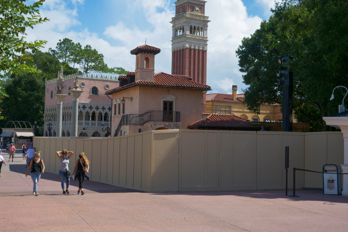 Similarly, this portion of the Italy Pavilion bordering the American Adventure Pavilion has been walled off for a few weeks as ground work takes place.