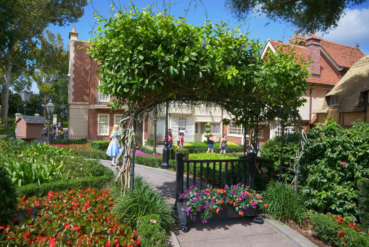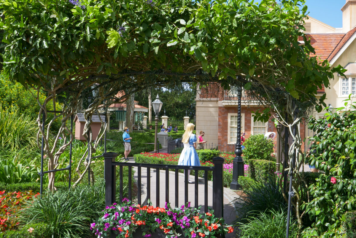 In the U.K. Pavilion, some testing of a new photo op location for Alice was going on, moving her out of the gazebo and to a sidewalk which is closer to the main walkway through the pavilion. Unfortunately, this wasn’t a positive change as it forced guests into narrow walkways which often had opposing traffic in order to have a decent opportunity for photos.