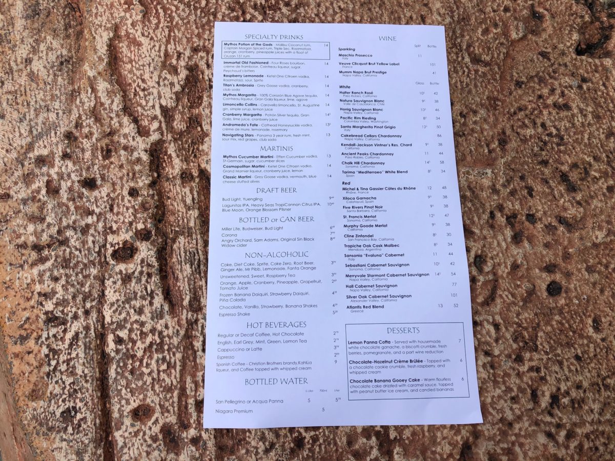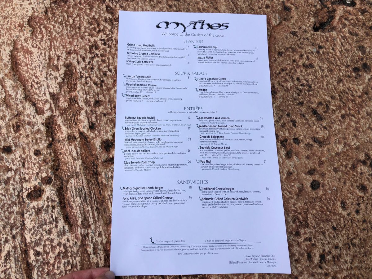 Mythos restaurant over in the Lost Continent at Islands of Adventure has some new menu items available. Grilled Lamb Meatballs, Butternut Squash Ravioli, Mediterranean Braised Lamb Shank, and Wild Mushroom Barley Risotto have been added to the menu.