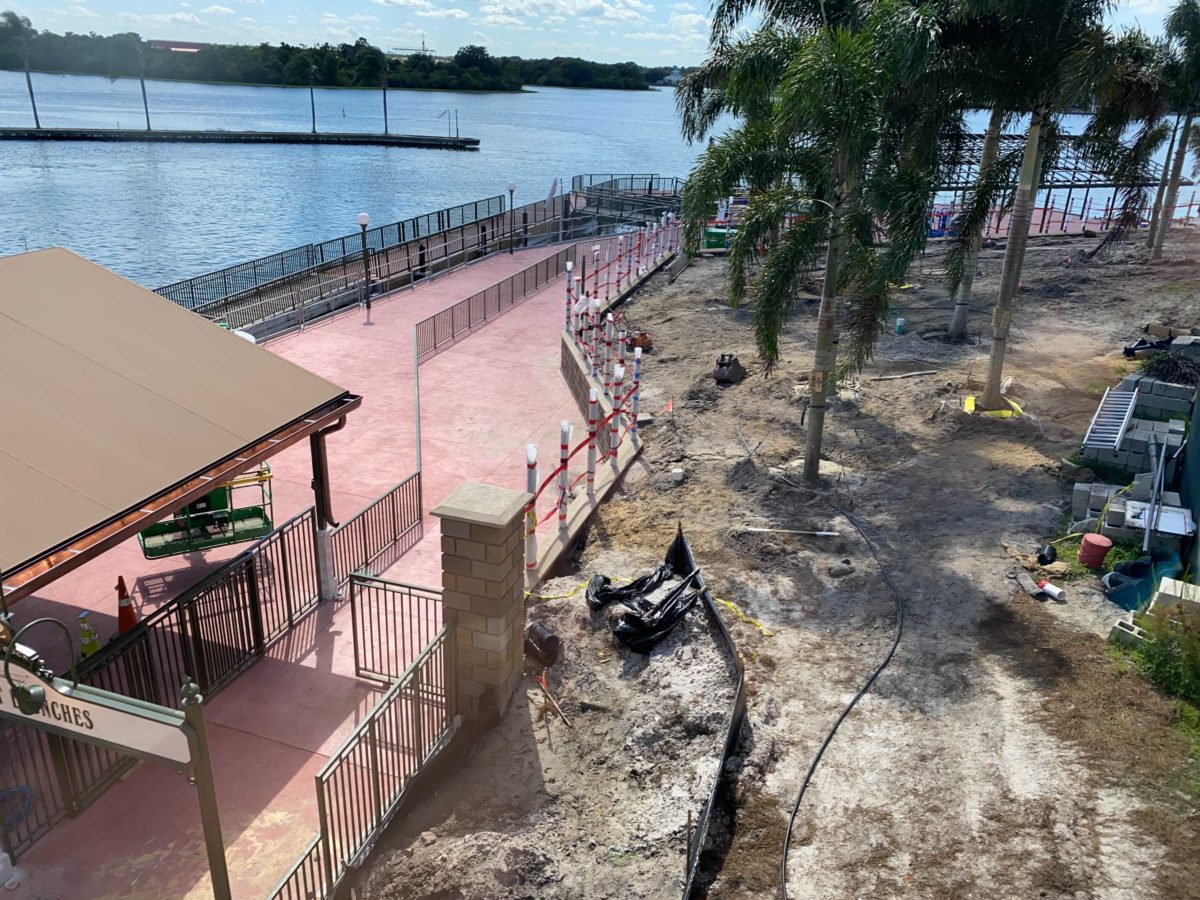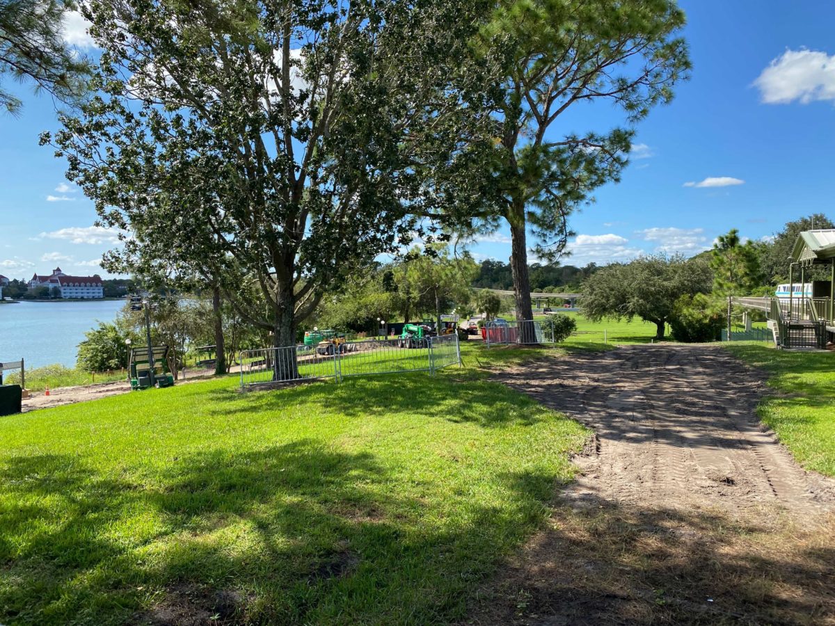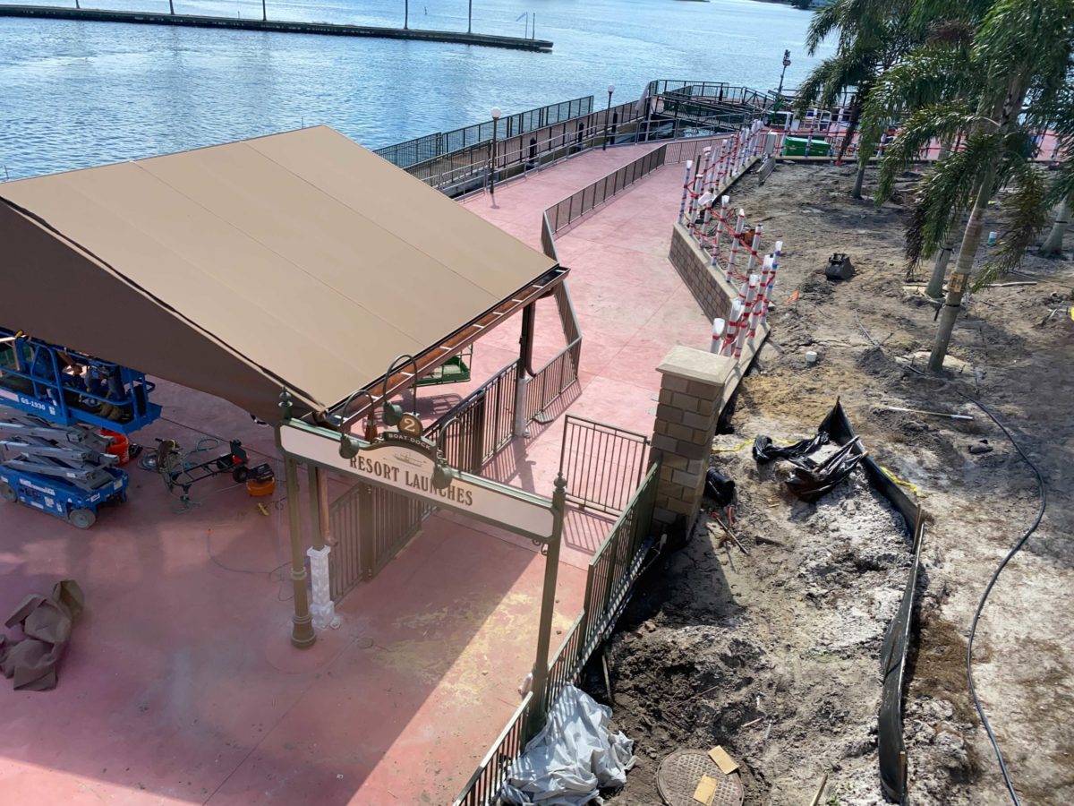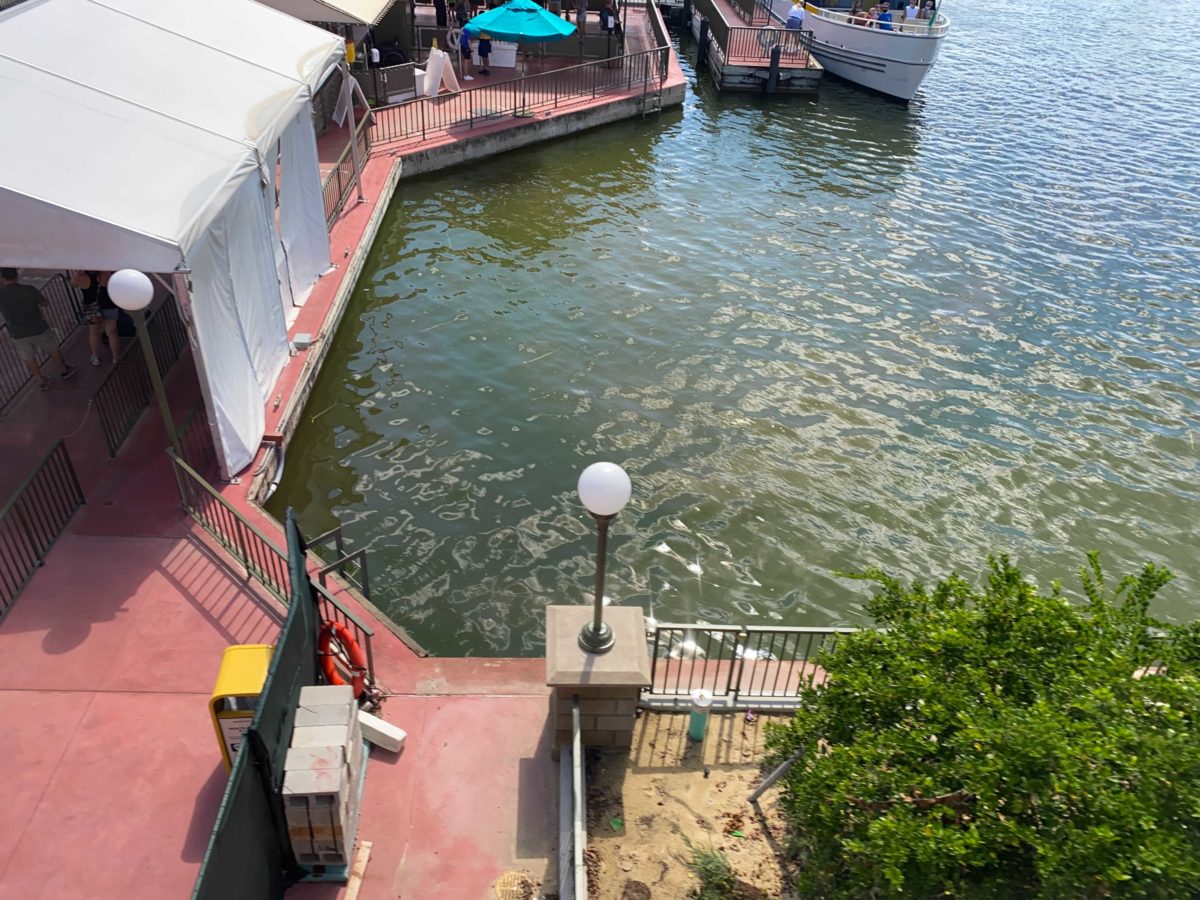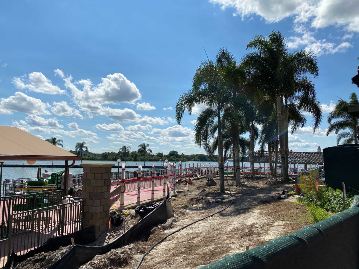 There’s now just a dirt path where the ramp and tent previously were. This suggests that Disney has decided not to open the walkway until the construction on the dock is complete.