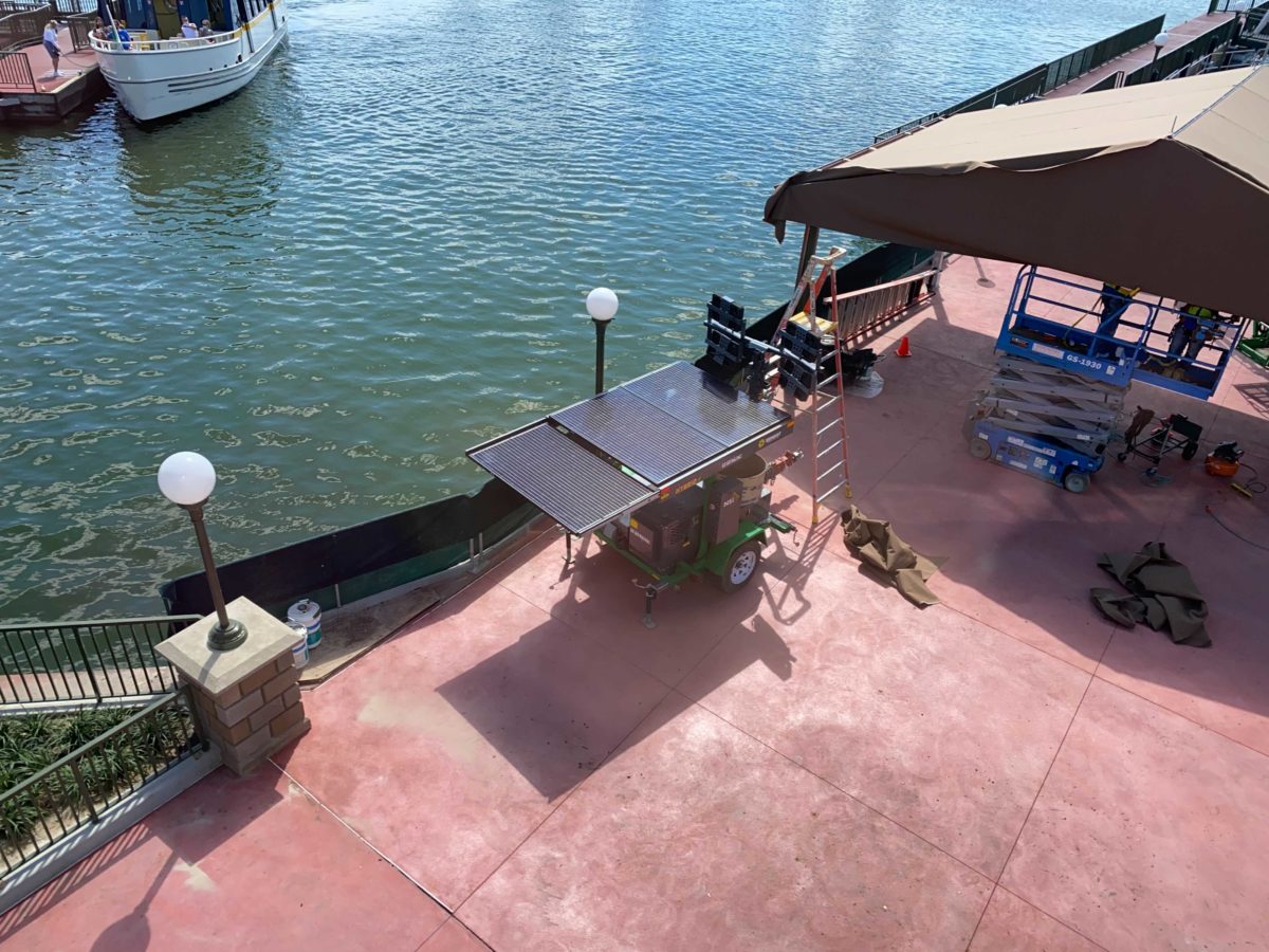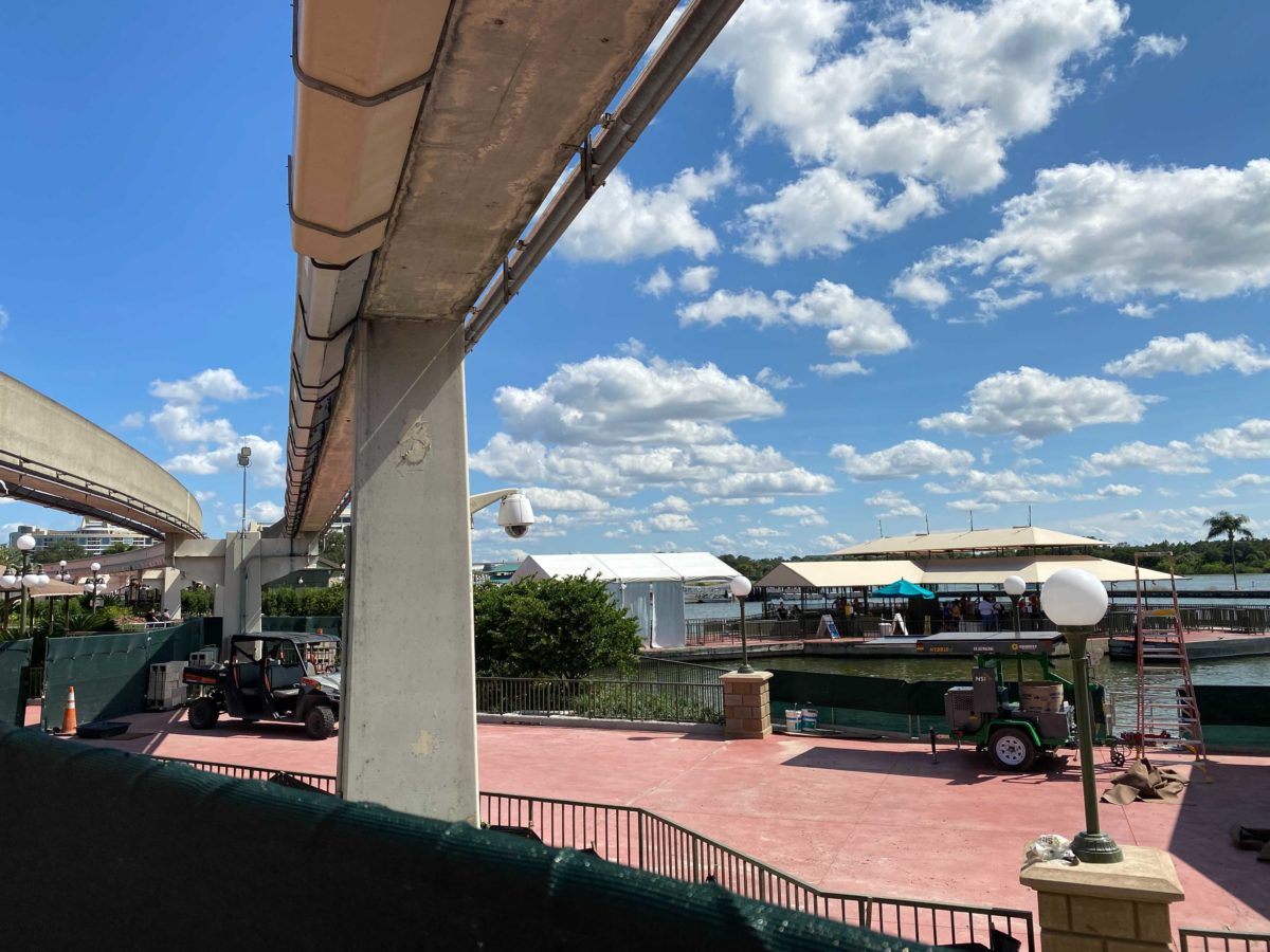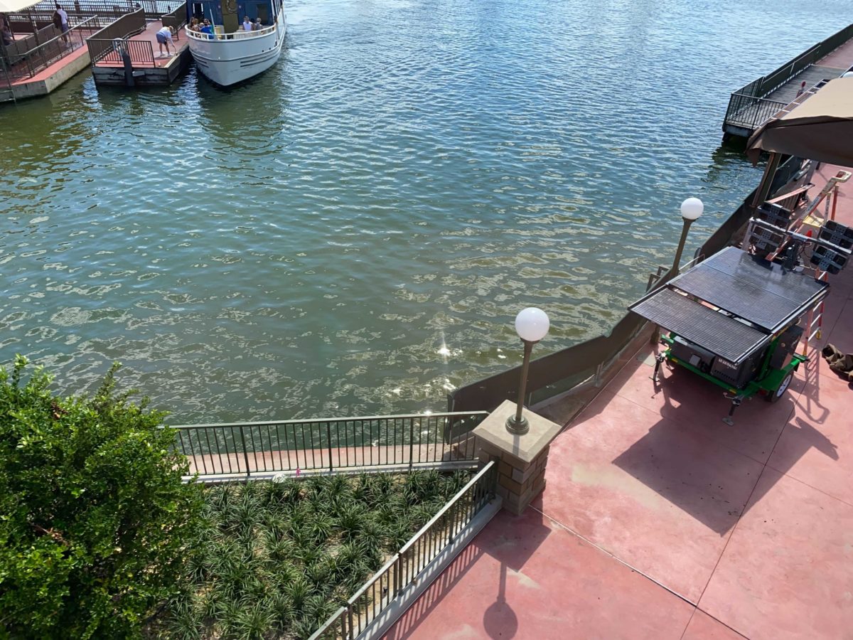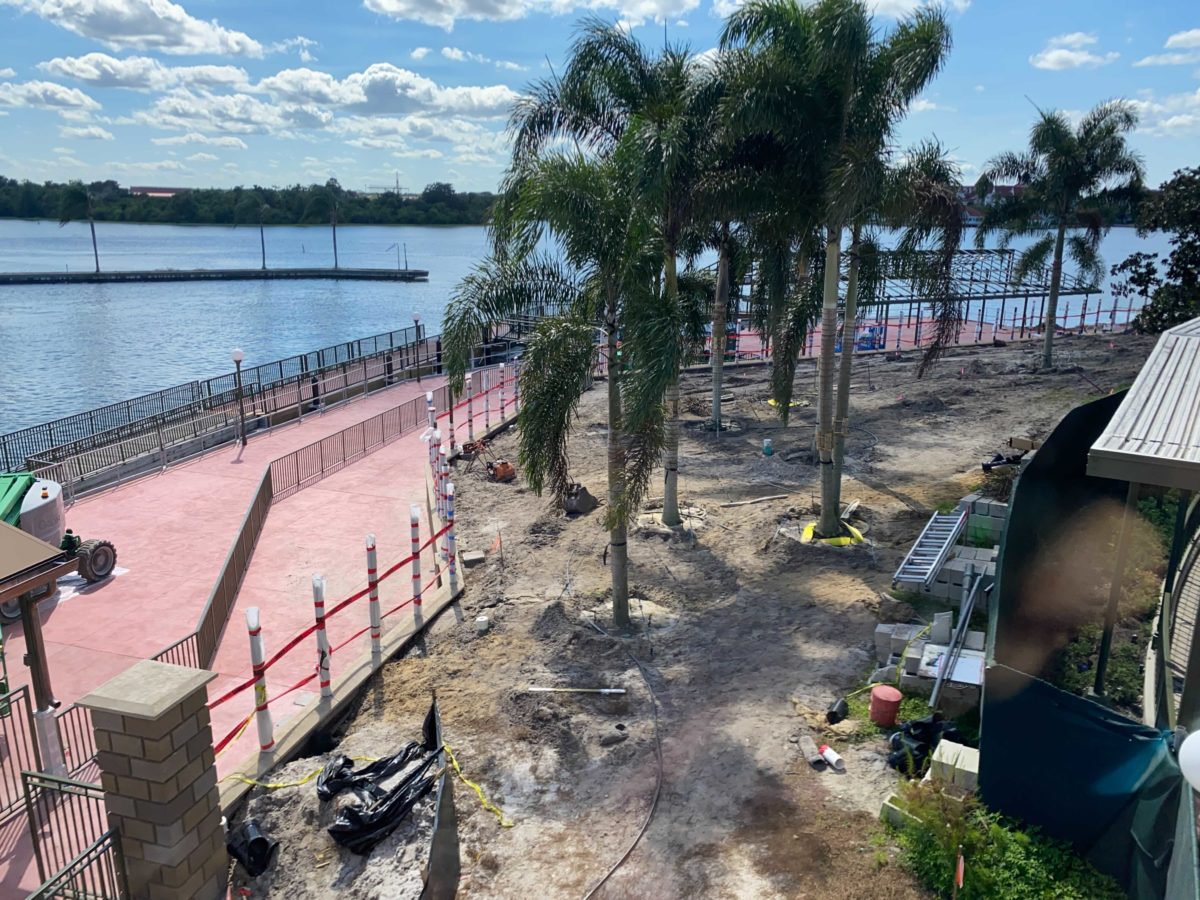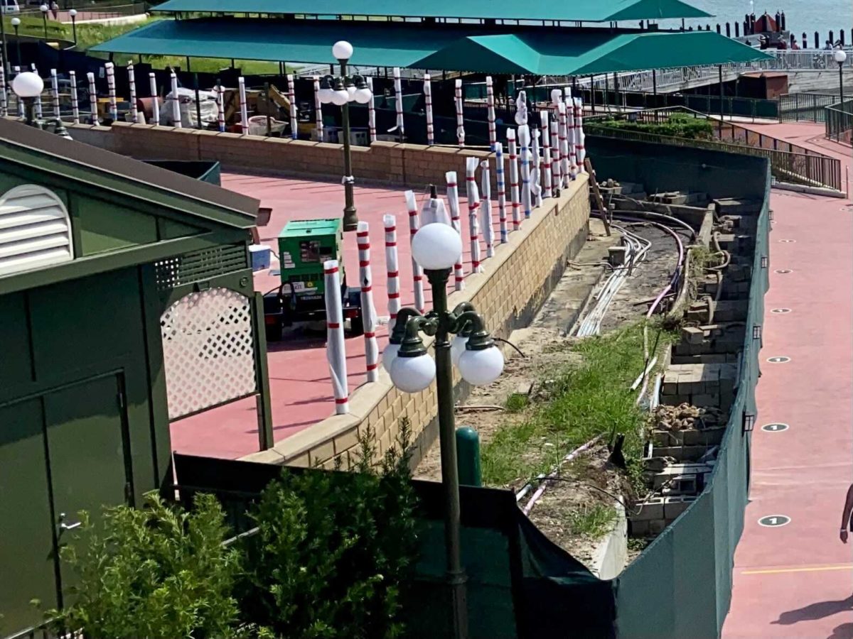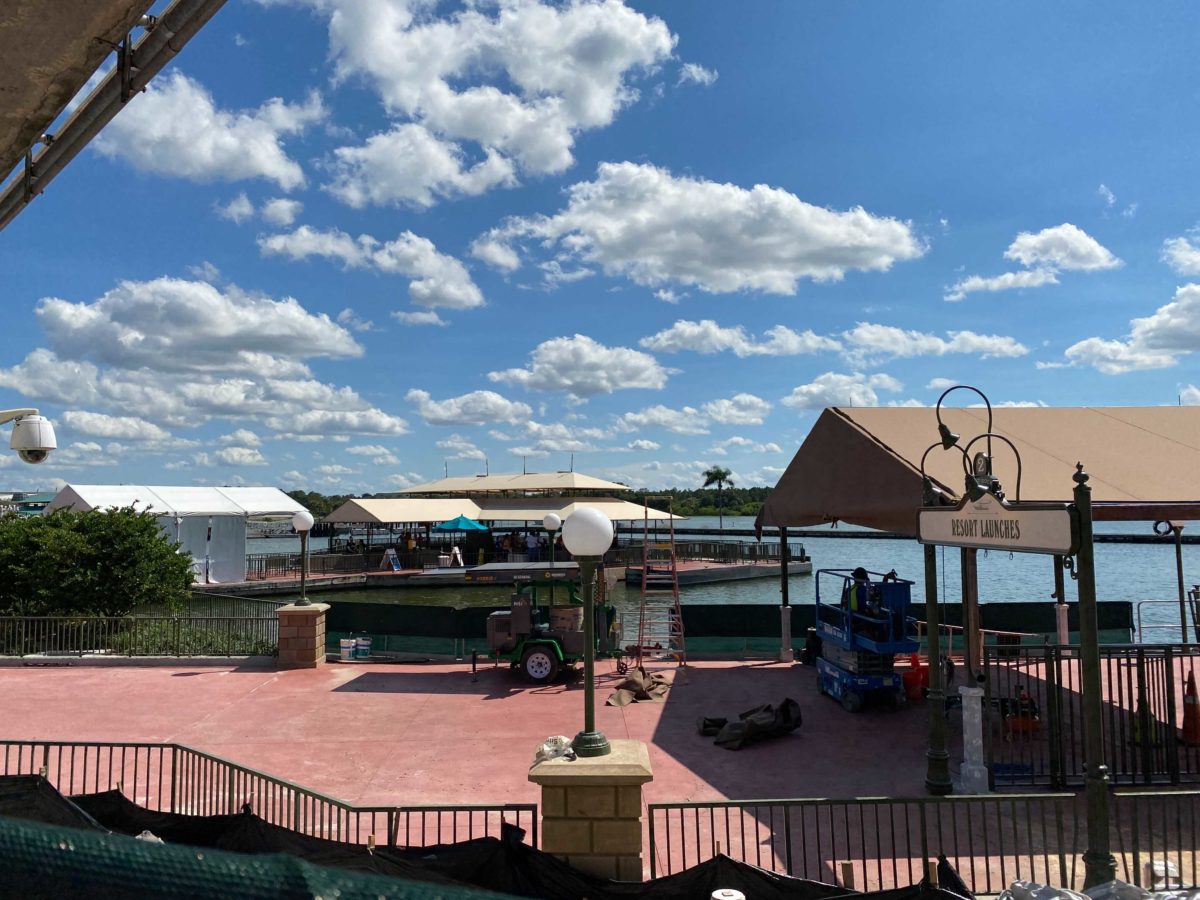 There’s now just a dirt path where the ramp and tent previously were. This suggests that Disney has decided not to open the walkway until the construction on the dock is complete.