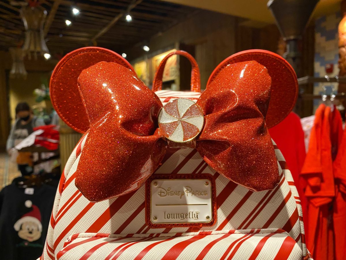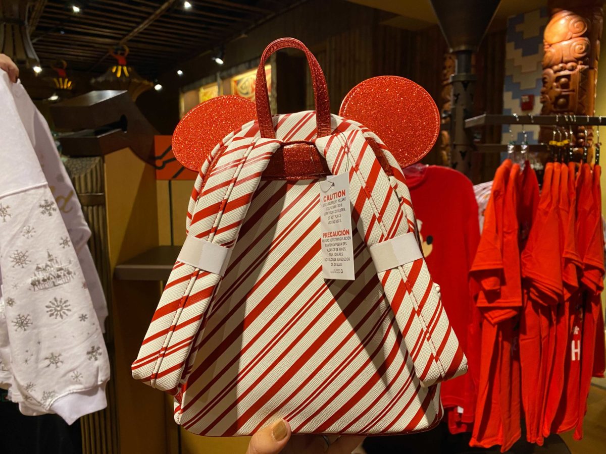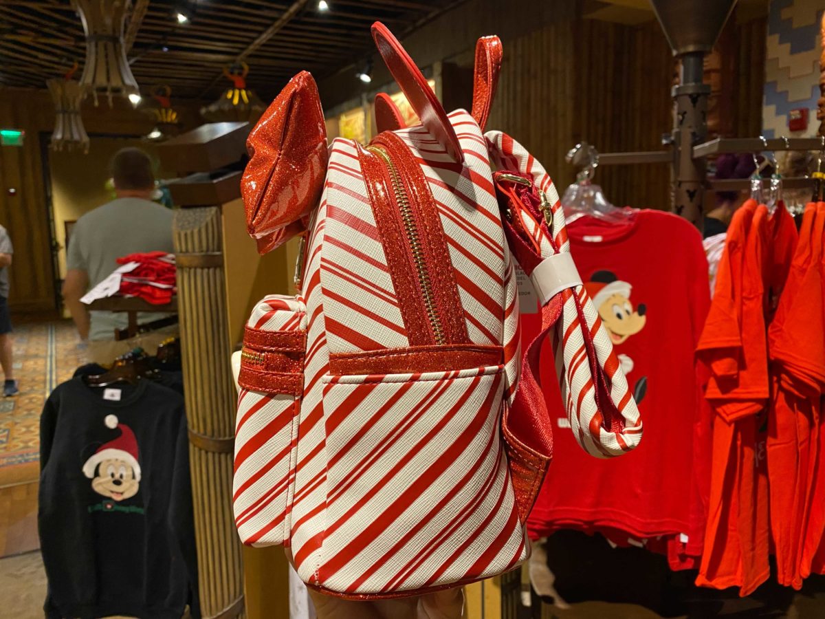 This Christmas-inspired mini Loungefly backpack is part of this year’s Disney Parks 2020 Holiday merchandise line, and retails for $75.00. We expect it’ll soon be available throughout the Walt Disney World resorts and theme parks, but for now, we found the backpack at the BouTiki in Disney’s Polynesian Village Resort.