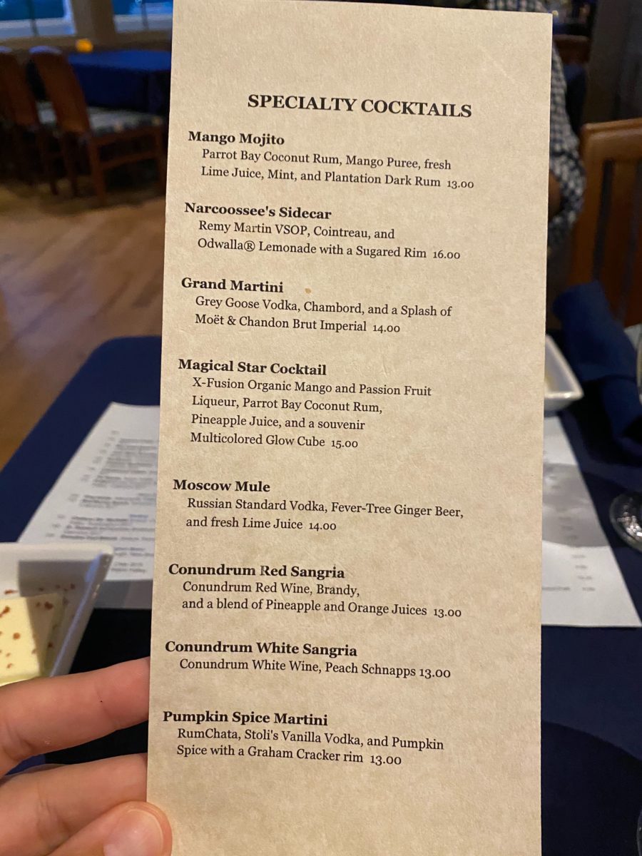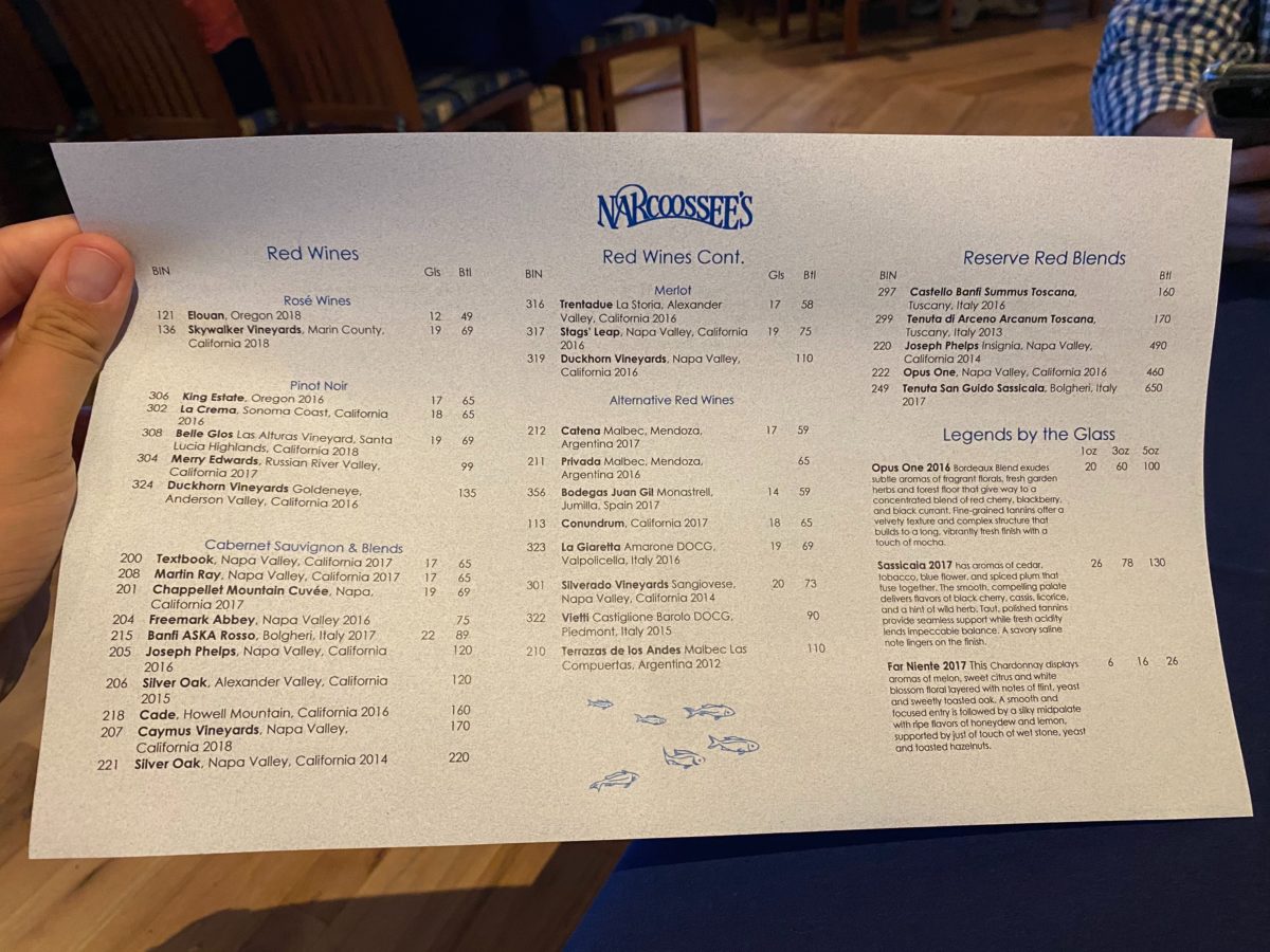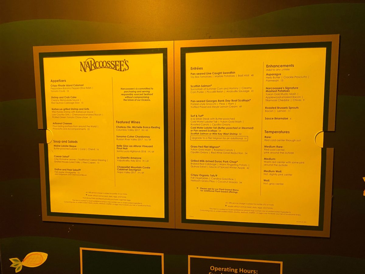 Narcoosee’s posted an outdoor menu to give us time to think about what we wanted to tasted this evening. Of course, the menu is also available in the My Disney Experience app.