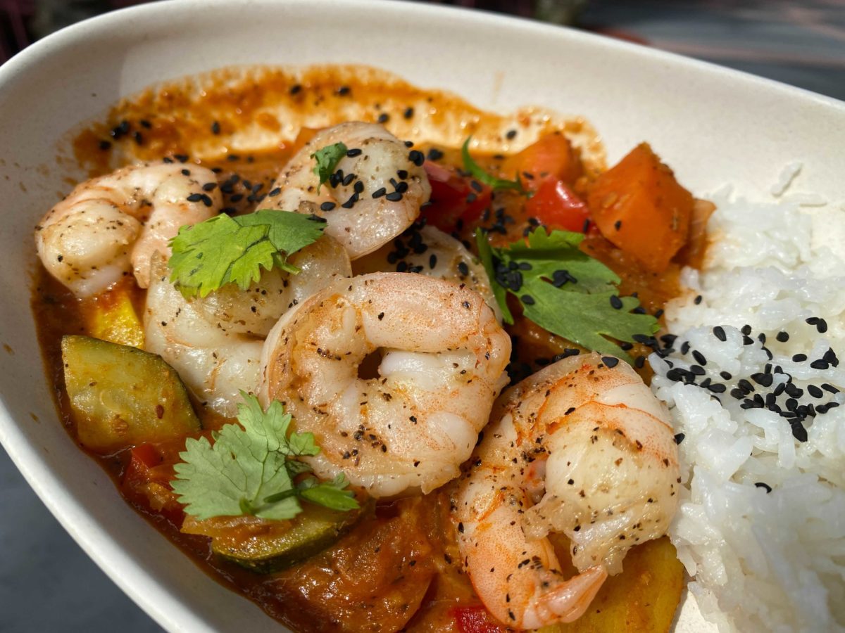 Sautéed Shrimp and Vegetables tossed with Red Curry Sauce served with Jasmine Coconut Rice