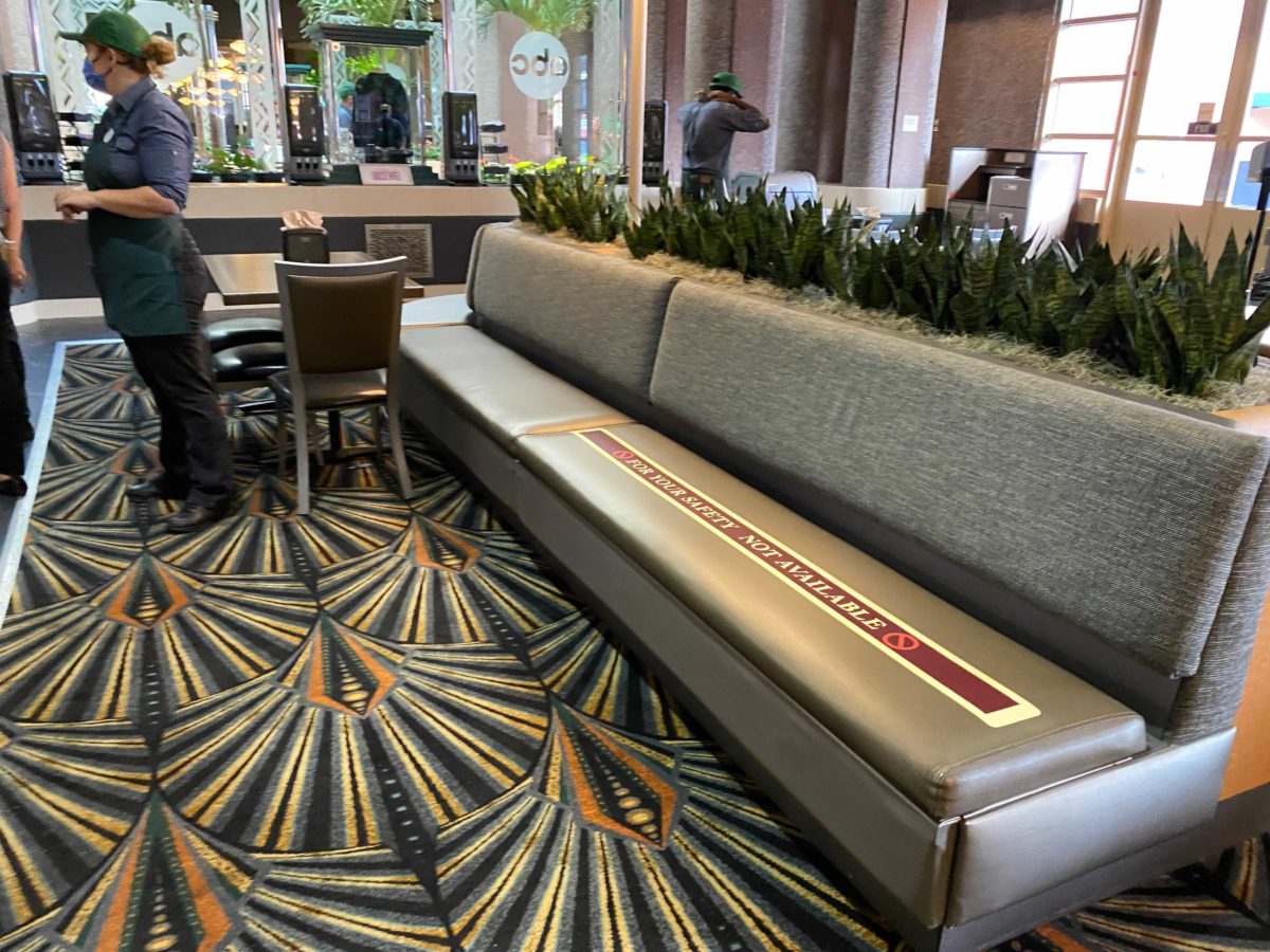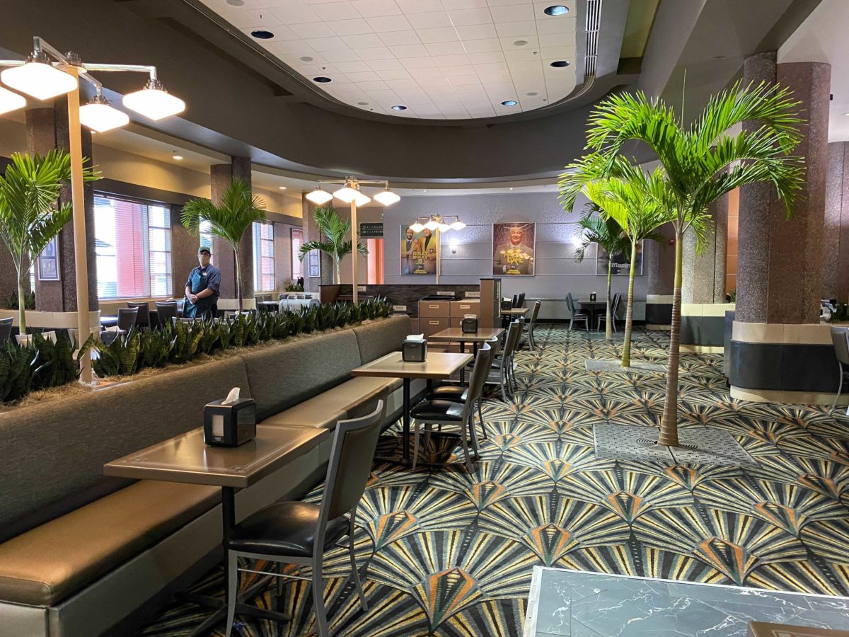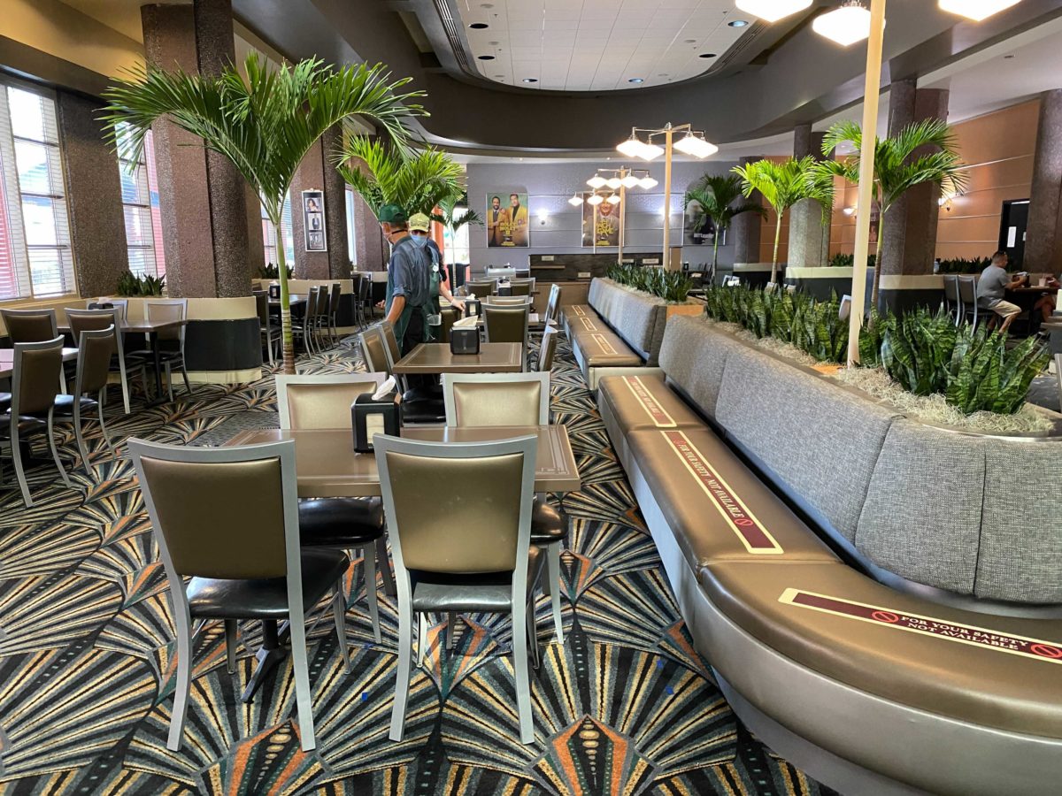 Seating on the left-hand side of the restaurant is open and Cast Members are directing guests to seats. Seating on the right-hand side is closed.