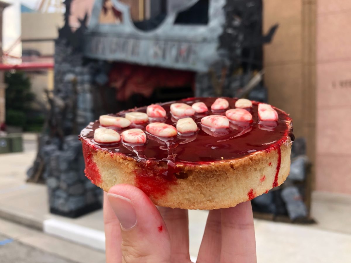 October is here and Universal Orlando Resort has officially kicked off their Halloween offerings, now available every day. The Halloween Horror Nights Tribute Store at Universal Studios Florida has whipped up some special new treats to celebrate the two haunted houses, including the Stolen Teeth Tart in honor of Revenge of the Tooth Fairy. We love a good holiday treat, especially when it’s themed.