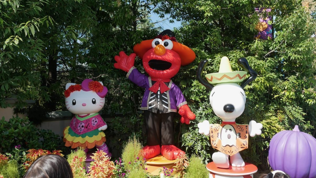 The Halloween banners include beloved USJ characters in their Halloween garb, including Elmo, Hello Kitty, and Charlie Brown! All of these characters are actually out in the park for Guests to meet!