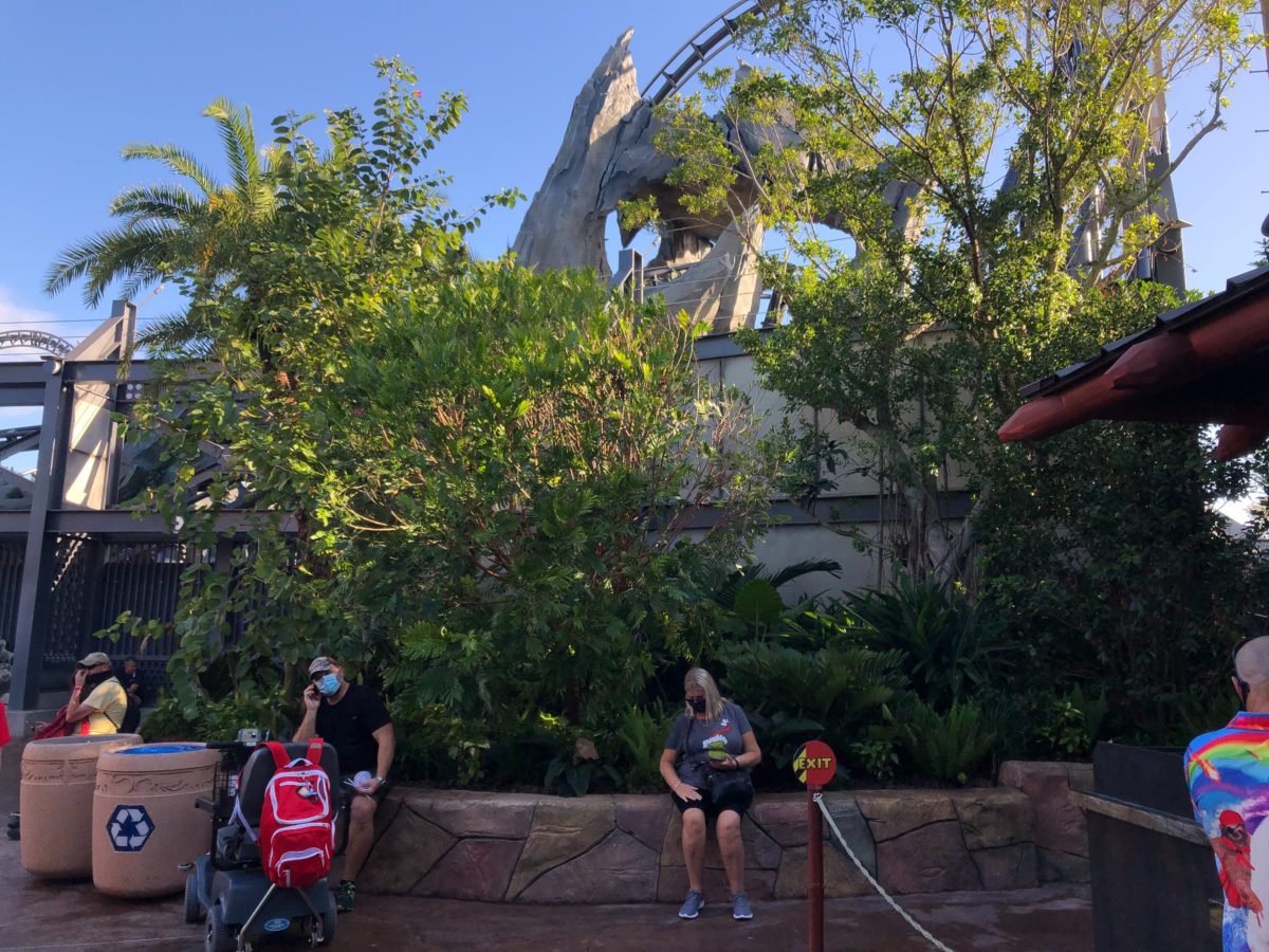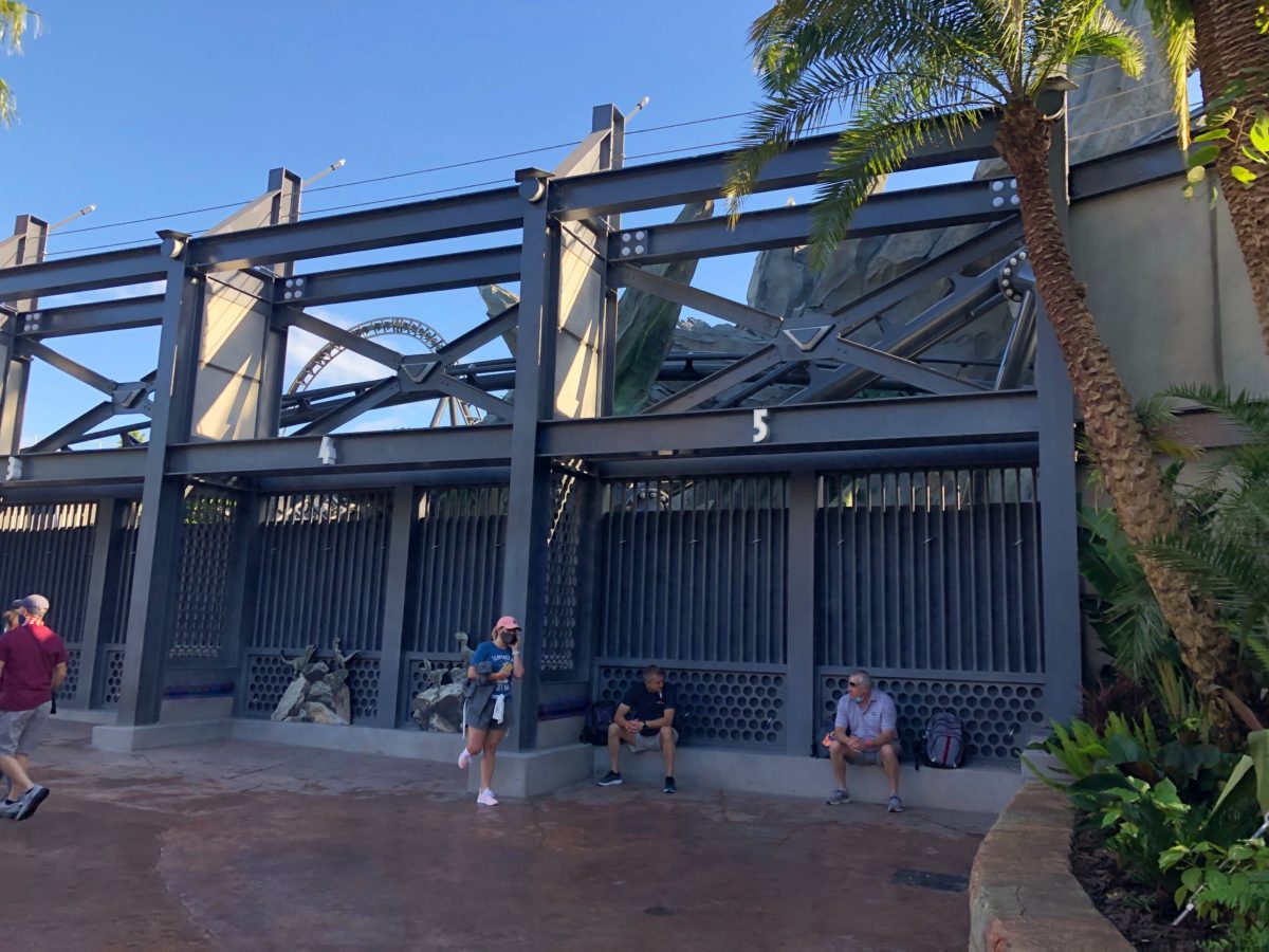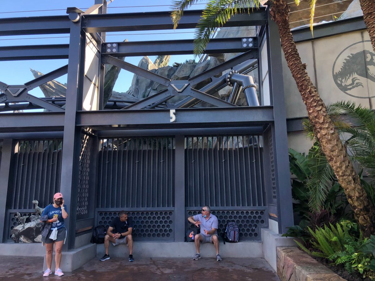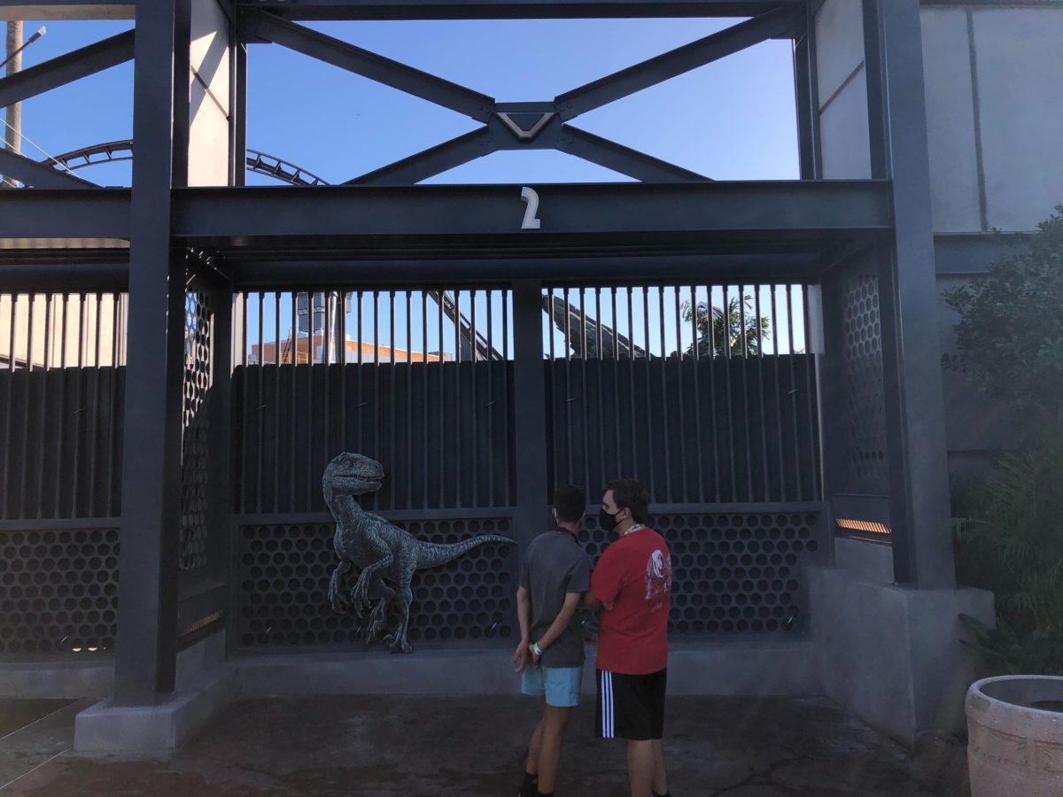 Some construction walls have come down next to Jurassic World VelociCoaster in Universal’s Islands of Adventure, fully revealing the new raptor paddock and a merchandise kiosk.