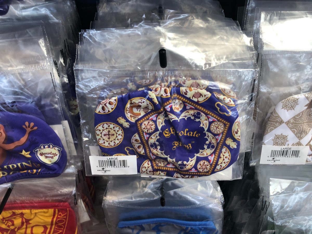Universal previously released a face mask with a chocolate frog on it that says “Watch out for jumping frogs.”
