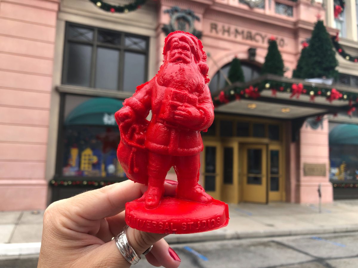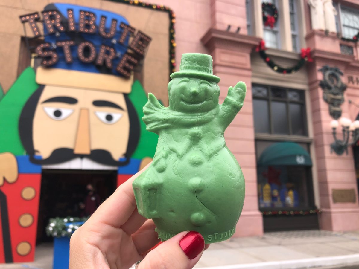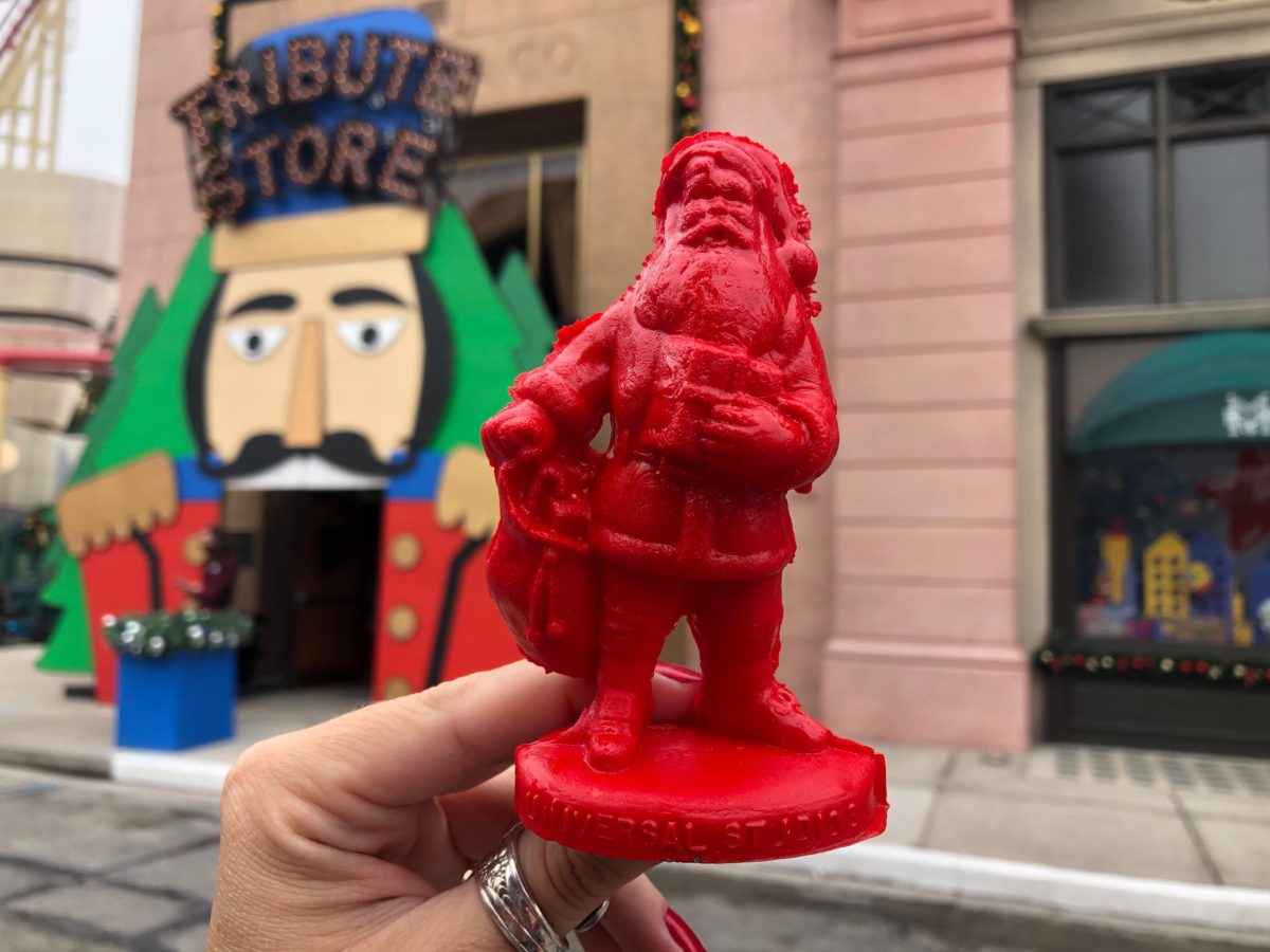 The Holiday Tribute Store at Universal Studios Florida finally opened today! We loved taking a tour of the store’s themed rooms and we couldn’t wait to try out the new mold-a-rama machines. We had fun with these machines when the building was the Halloween Horror Nights Tribute Store. Now, the new mold-a-rama machines let you create your own Santa Claus and snowman wax figures.