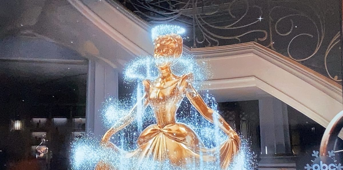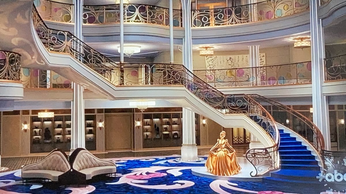 During this morning’s “Disney Parks Magical Christmas Celebration” on ABC, we got a brand new look at the Disney Wish, set to make its maiden voyage in summer 2022. In classic Disney Cruise Line tradition, the grand atrium will feature a character statue to welcome guests as they board. Aboard the Disney Wish, that character statue will be Cinderella, a large, majestic statue in gold.