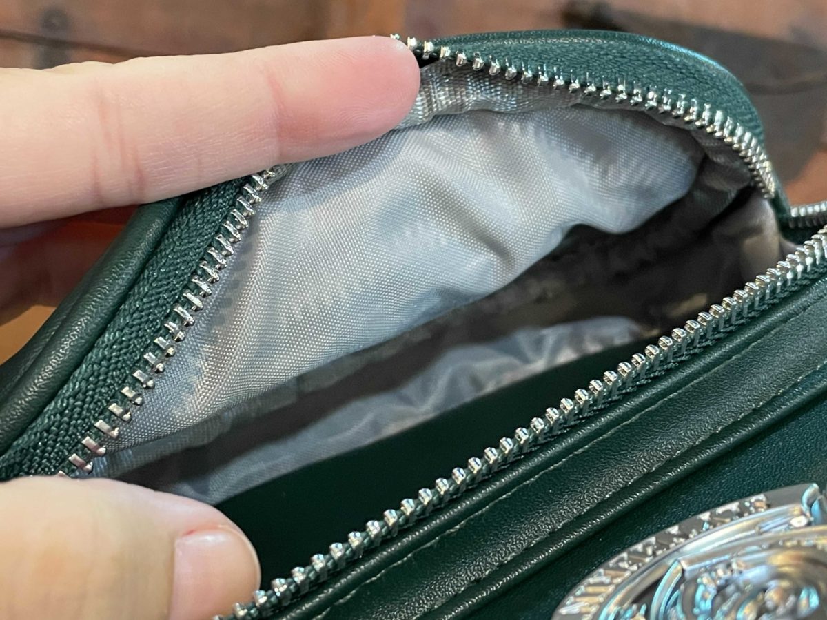 Similar to Slytherin, Ravenclaw’s raven is featured in silver, along with the zippers and inside lining.