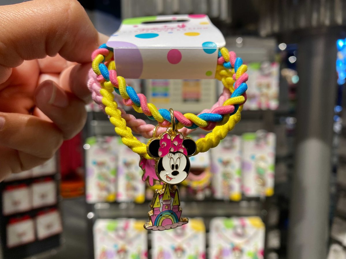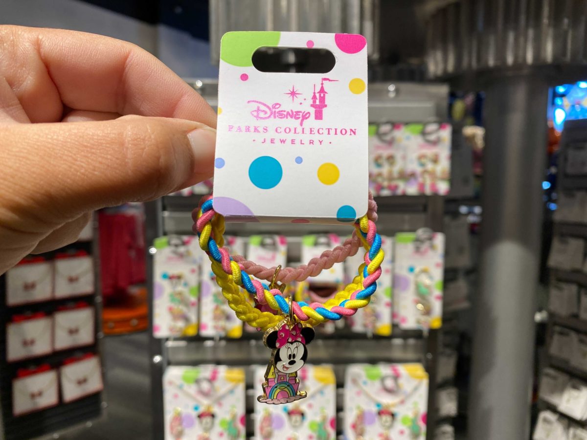 Charms include Minnie Mouse, a rainbow castle, and a pink unicorn.