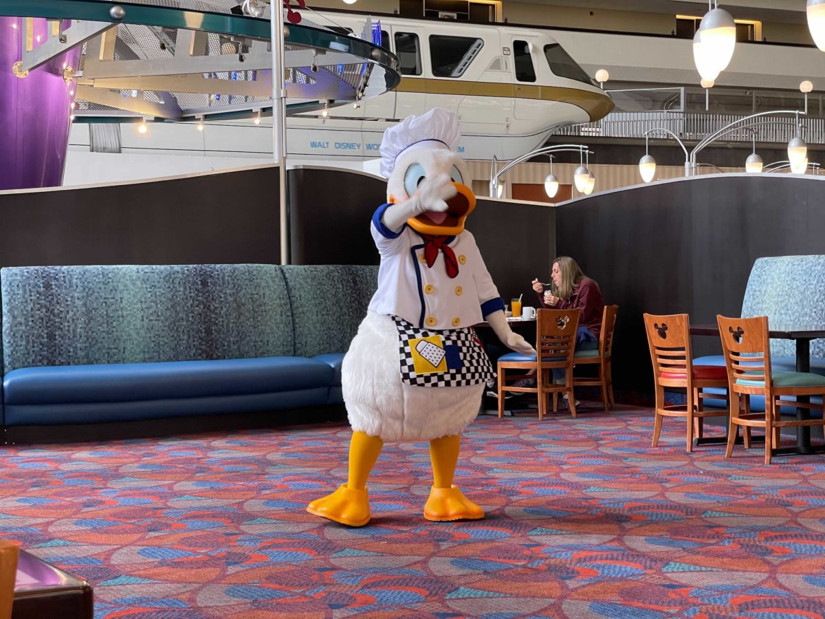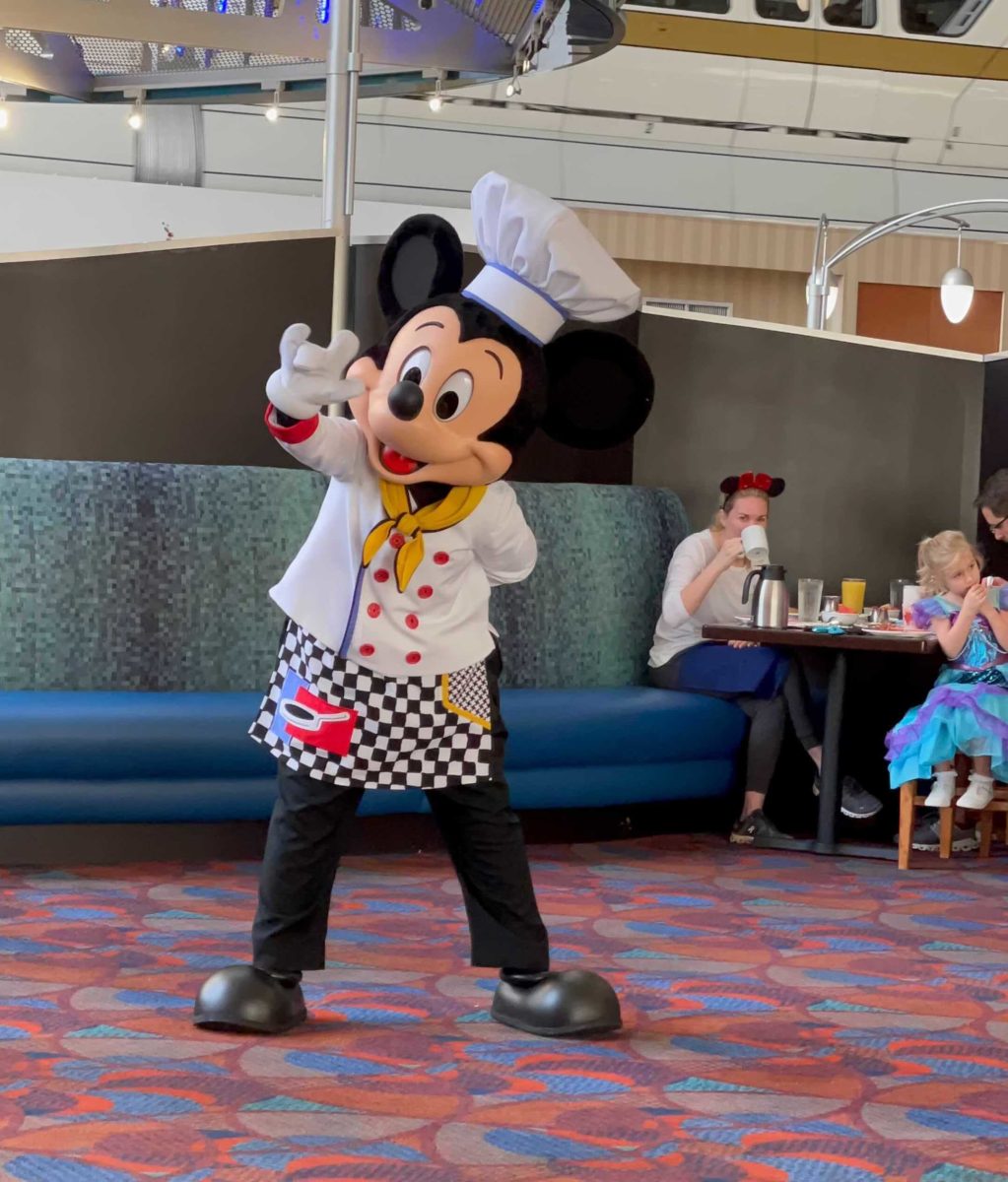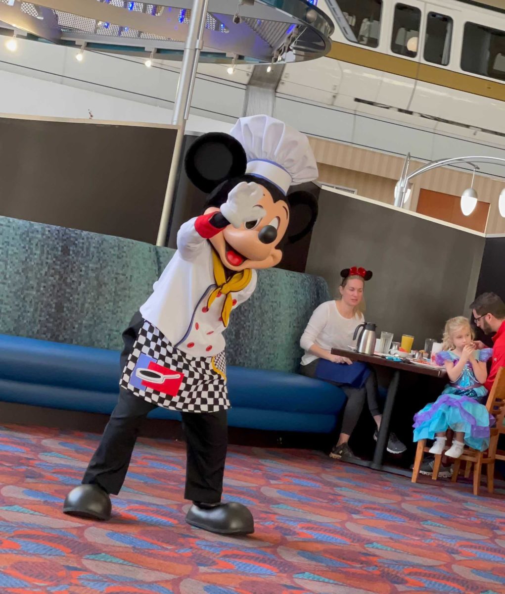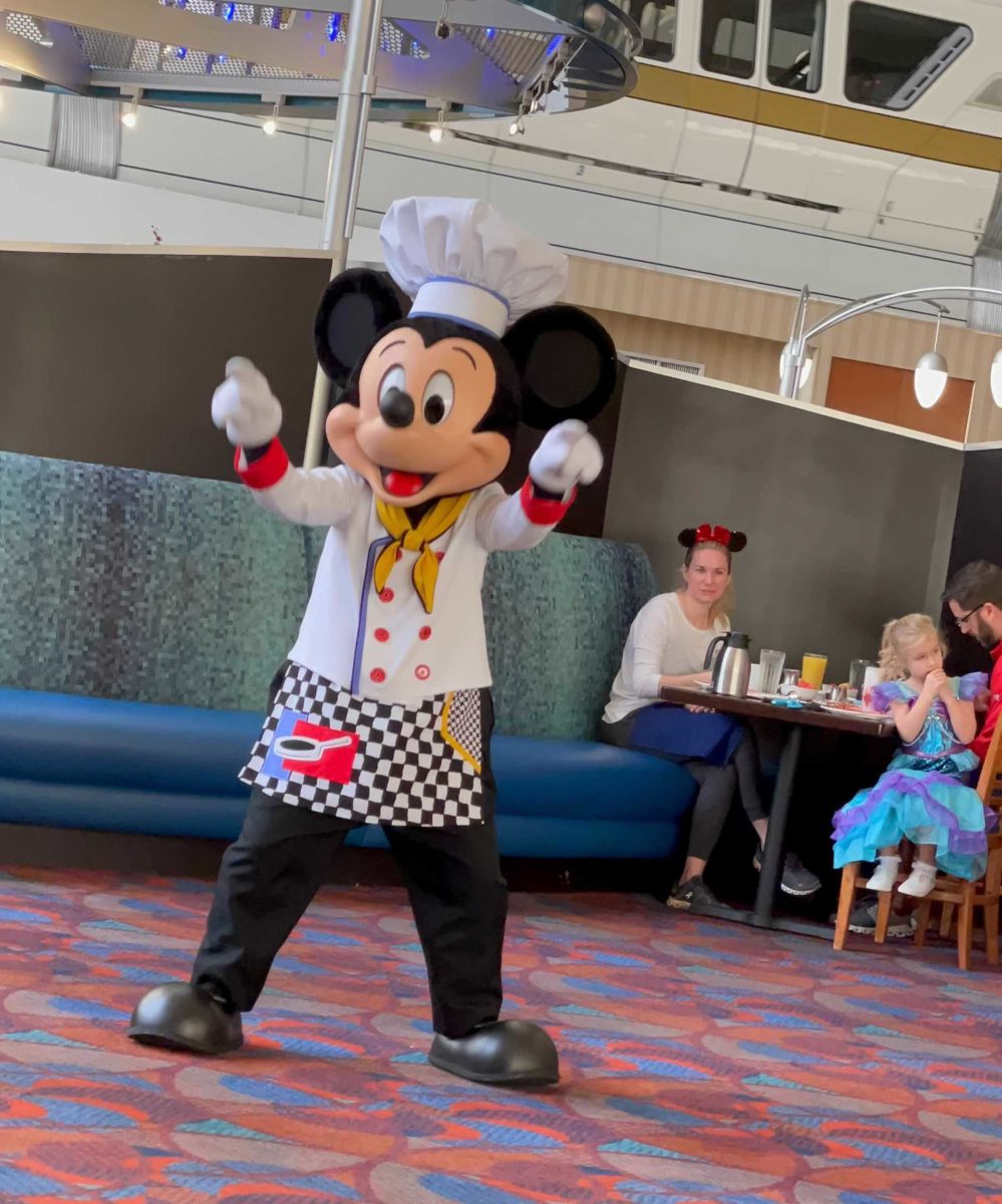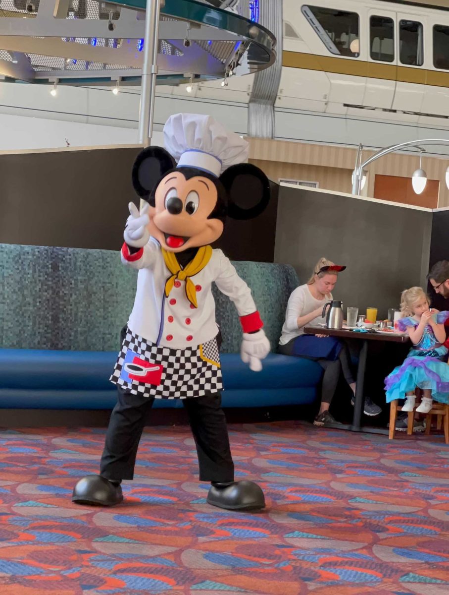 Good morning and welcome to Disney’s Contemporary Resort for the long-awaited return of characters to Chef Mickey’s! This is our second time at the popular, now-modified “buffet” dining experience—we came when it first reopened with the resort, featuring slightly lowered pricing (due to the lack of characters) and skillet-style, all-you-care-to-eat dining, but now the characters are back with the requisite price increase, so we decided to see what it was like.