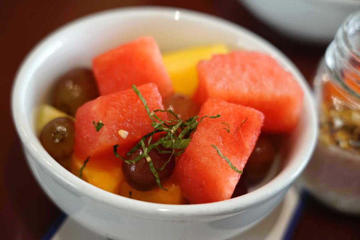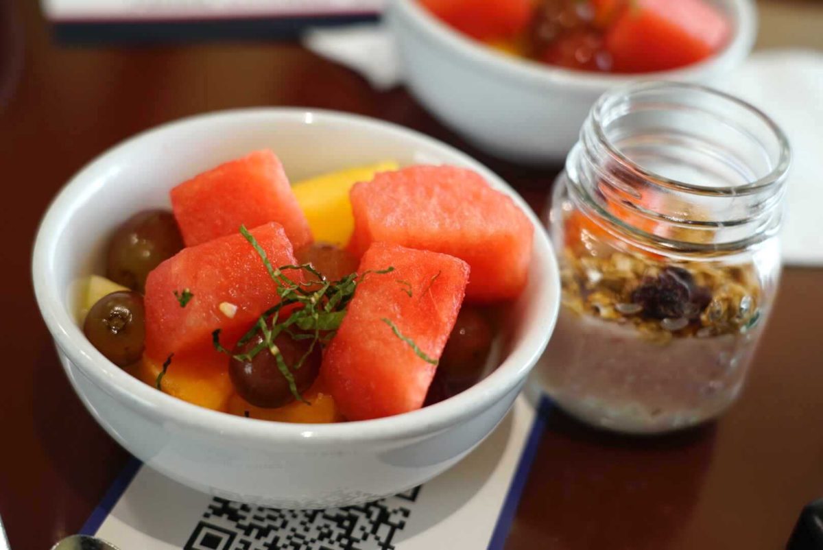 Many of the standard food items remain from the initial character-less return of Chef Mickey’s. The fruit cup has since been “upgraded” with a few grapes instead of the usual slimy melon pieces.