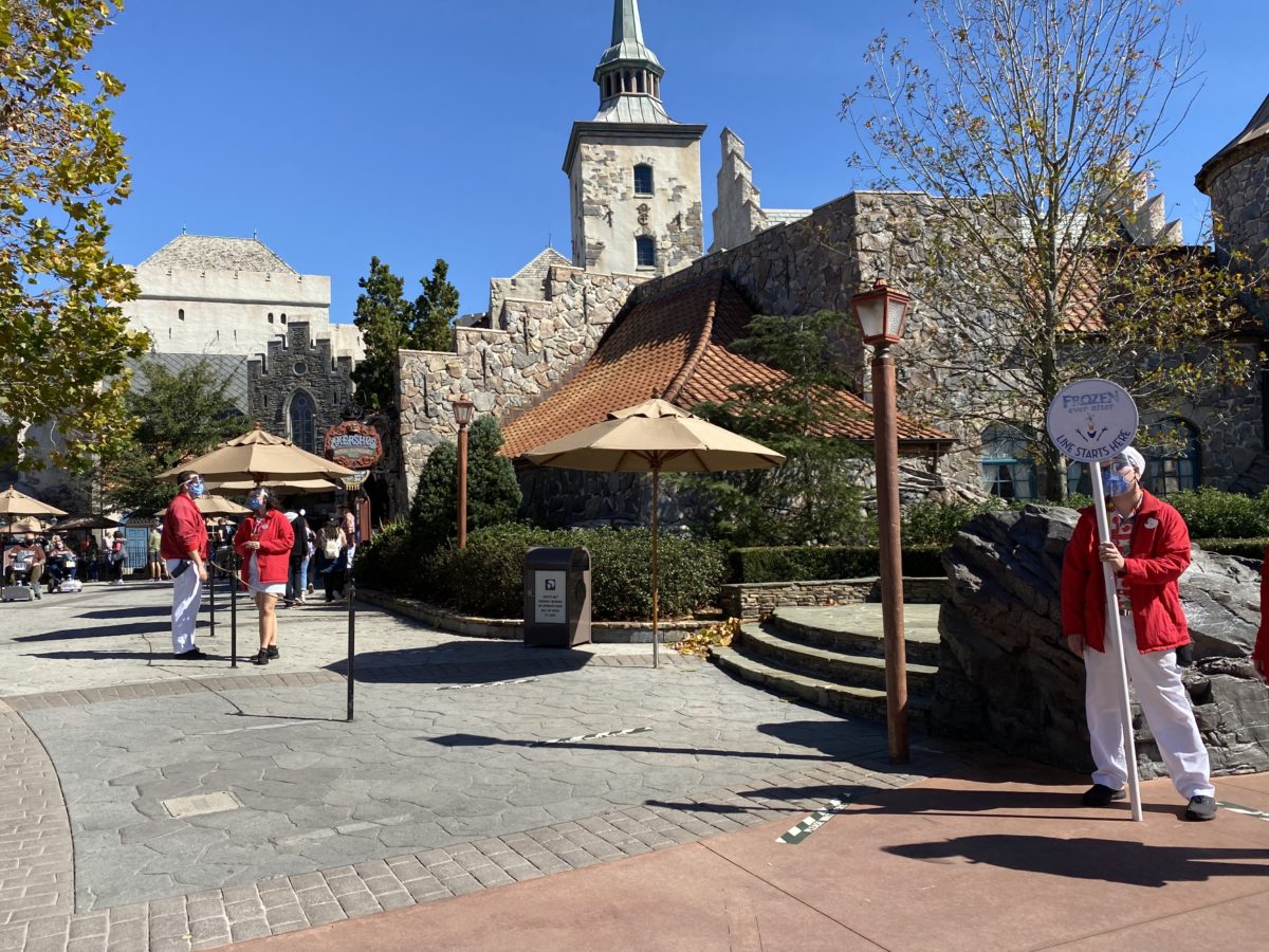 Notice anything missing from this photo? We were surprised to see almost no line outside of Frozen Ever After, and even more surprised to see that the wait time was 10 minutes at midday!