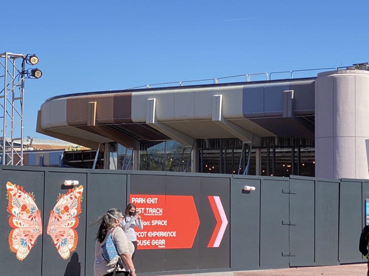 The scrim structure in front of Guardians of the Galaxy: Cosmic Rewind has been removed. Just the top of the scrim was visible above the construction wall previously, but now we have an unobstructed view of the facade of the building.