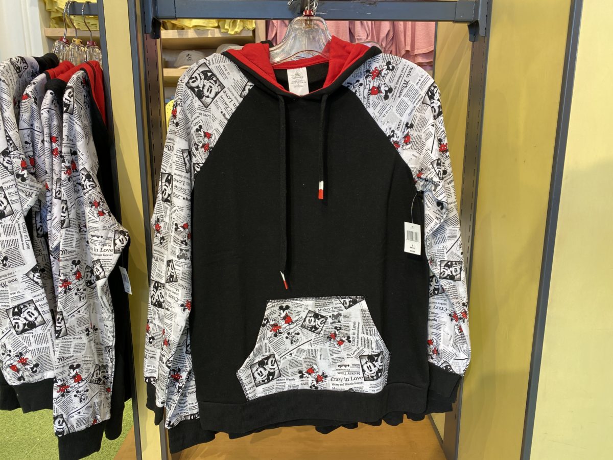 Next, we found a fun matching hoodie and joggers set at Disney Style featuring a newspaper print of Mickey and Minnie. The hoodie retails for $59.99, and the joggers retail for $44.99.