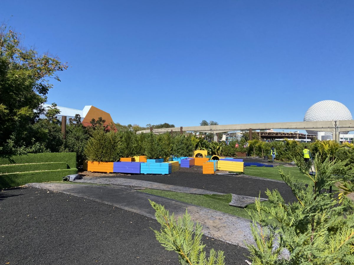 The play equipment that we saw being disassembled earlier this week in the play area near Traveler’s Cafe has been completely removed. The landscaping also looks like it’s getting changed as well.