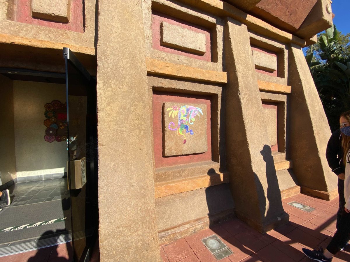 Coco’s Dante, in his alebrije form, can be found just to the right of the entrance to the pyramid.