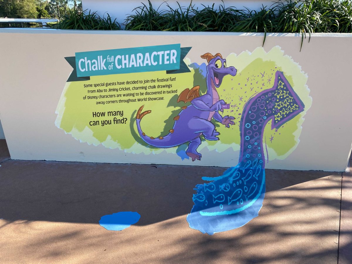 Figment invites guests to join the “Chalk Full of Character” scavenger hunt around World Showcase. (More on that in a bit.)