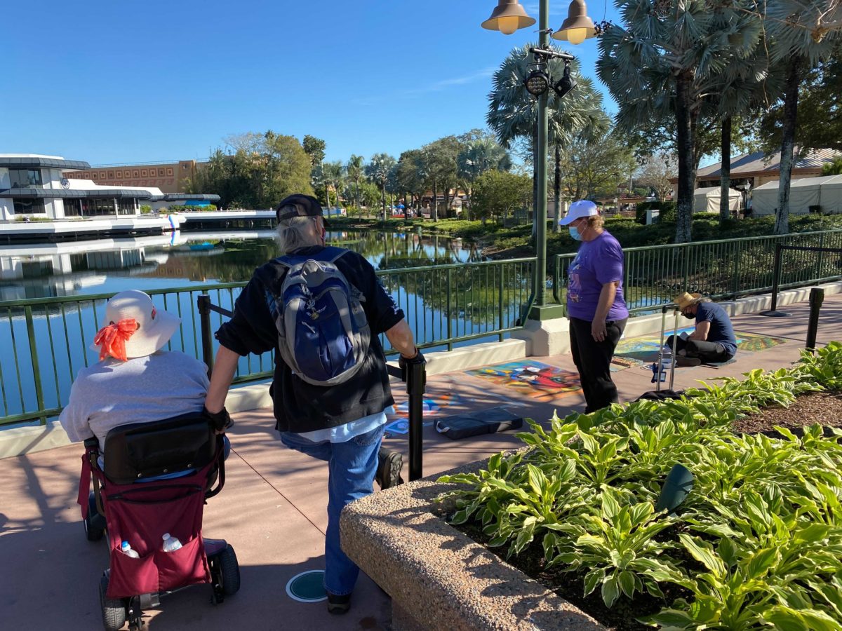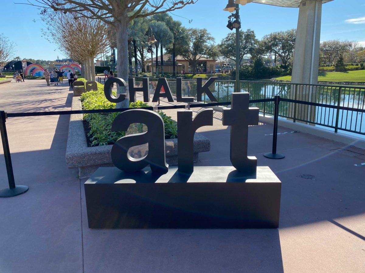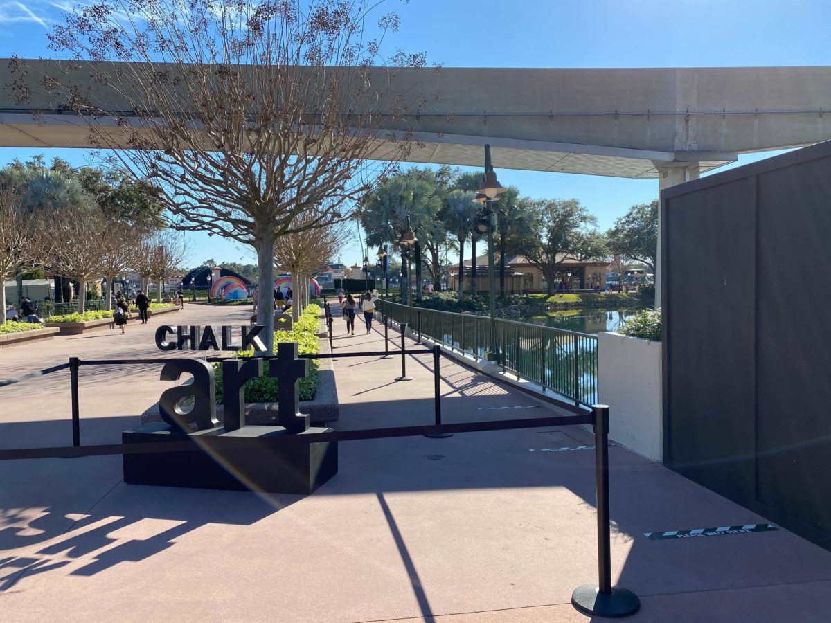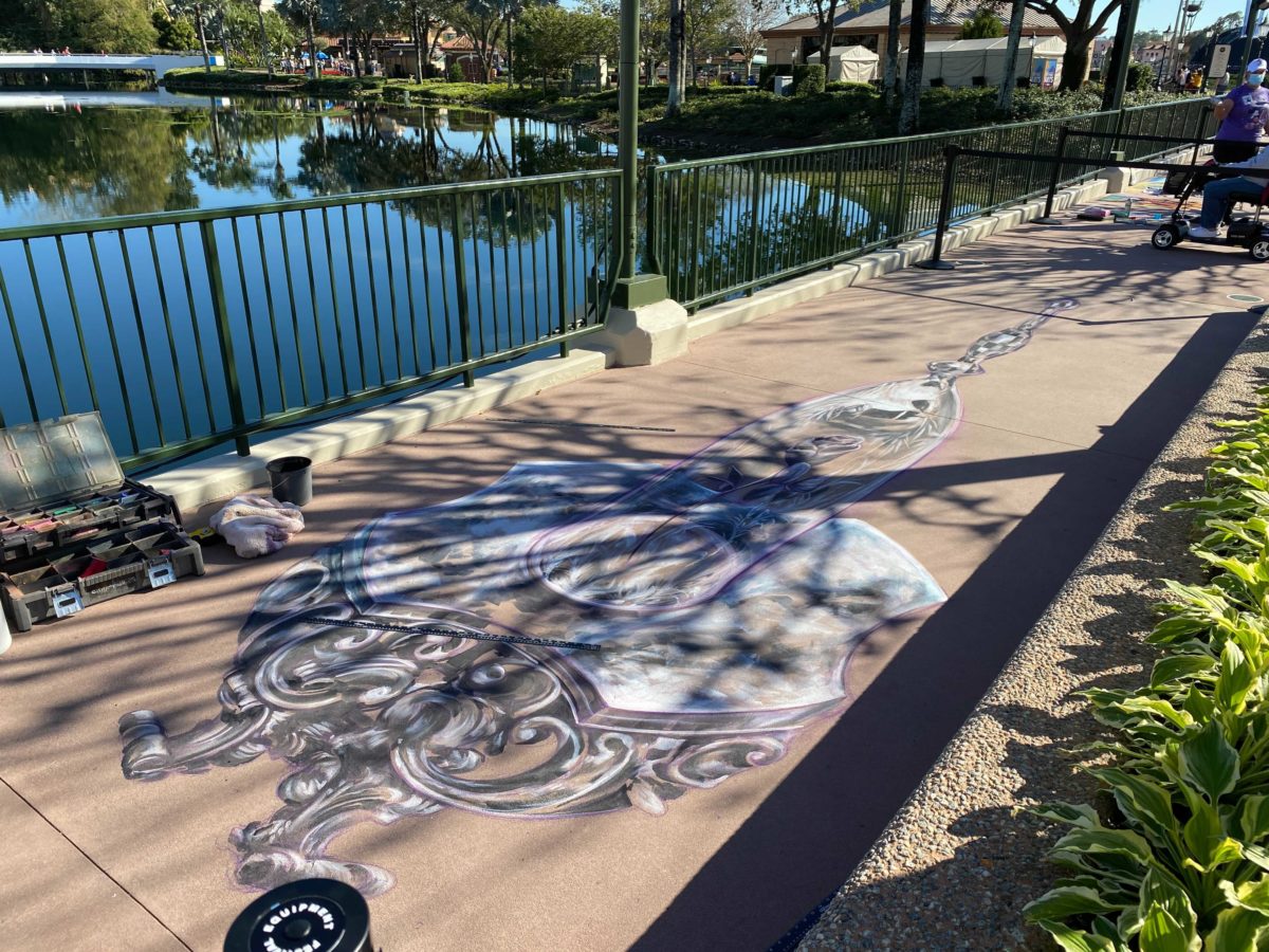 Near The EPCOT Experience, artists have begun drawing their intricate works of chalk art.