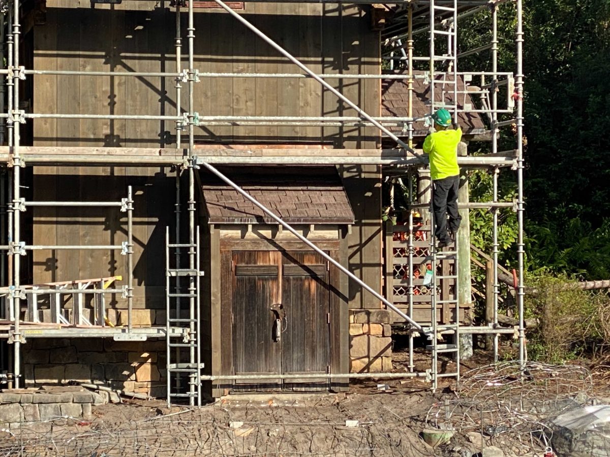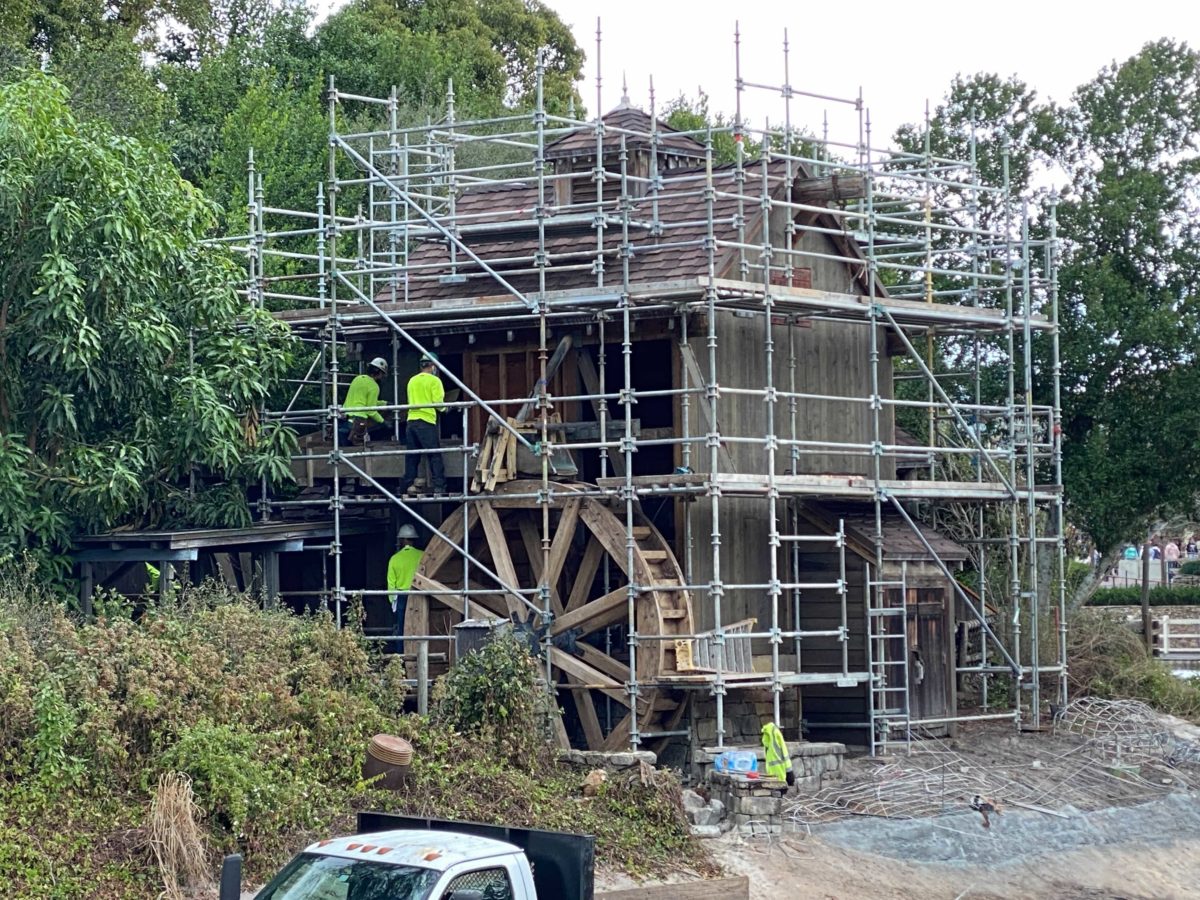 While construction continues, the building is surrounded by scaffolding. This is the only visible refurbishment on Tom Sawyer Island, but more is probably happening throughout the island.