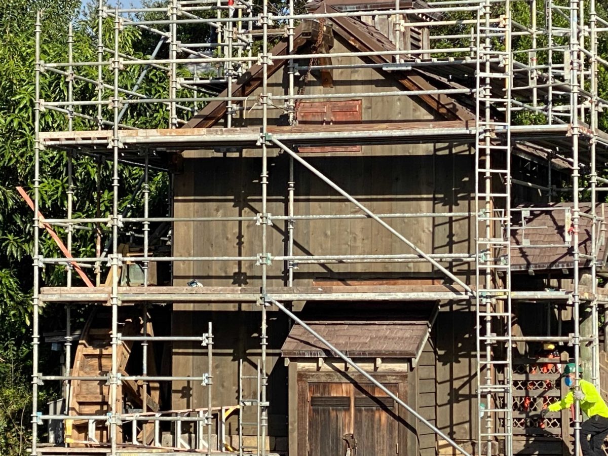 At first, we thought the building had received a completely new paint job, including painting over the “Harper’s Mill” sign. However, we learned that the wood is actually all being replaced.