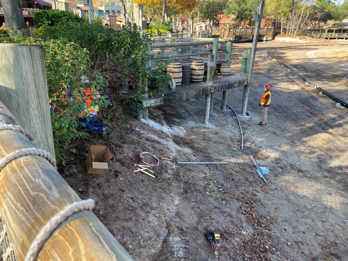 The visible riverboat track has been replaced, and today we saw some workers at one section of it. Plus, we spotted another construction worker crossing a Tom Sawyer Island bridge.