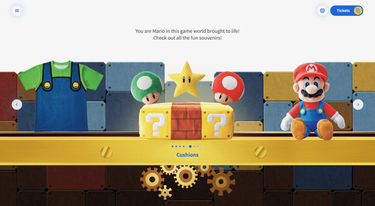 There was also a little bit more sneak peeks at some merchandise items coming to the land, including a Luigi overalls T-shirt, a cushion featuring ? Blocks, a Star, and a 1-Up and Super Mushroom, and a Mario plushie! But there’s tons more yet to be revealed.