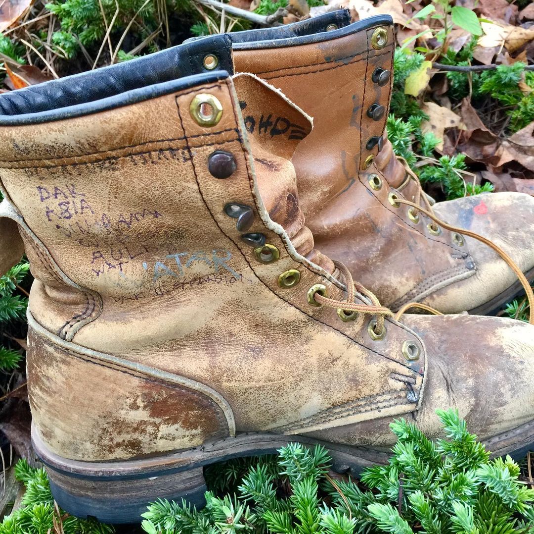 Joe always followed his projects to the field. He led from concept to opening day, and fun fact that I learned just recently – Joe wore the same work boots for ALL of his projects, he’d just resole them when needed. That’s what you see in the pictures here – with names of each completed project scribbled on the side, capturing history in the making.