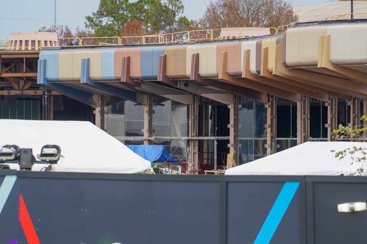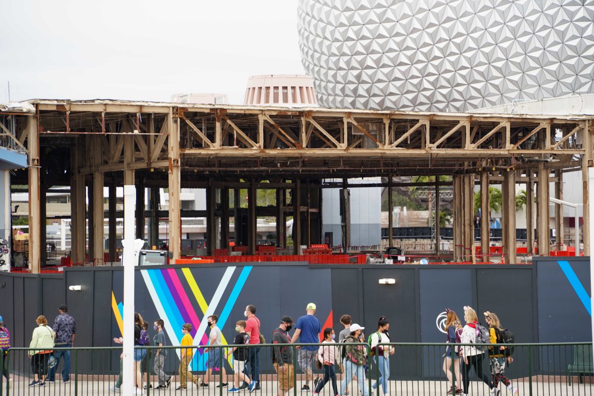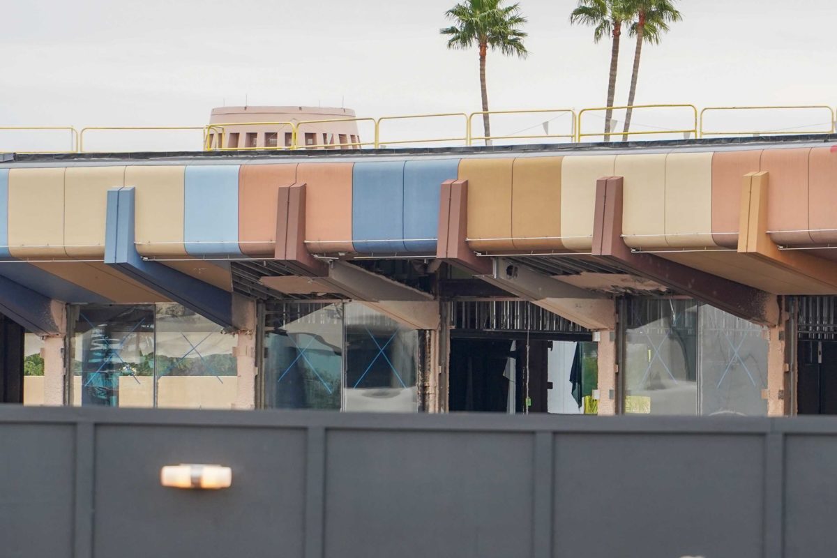 Across from Mouse Gear, Innoventions West continues to be demolished. It has mostly been stripped down to its framework.