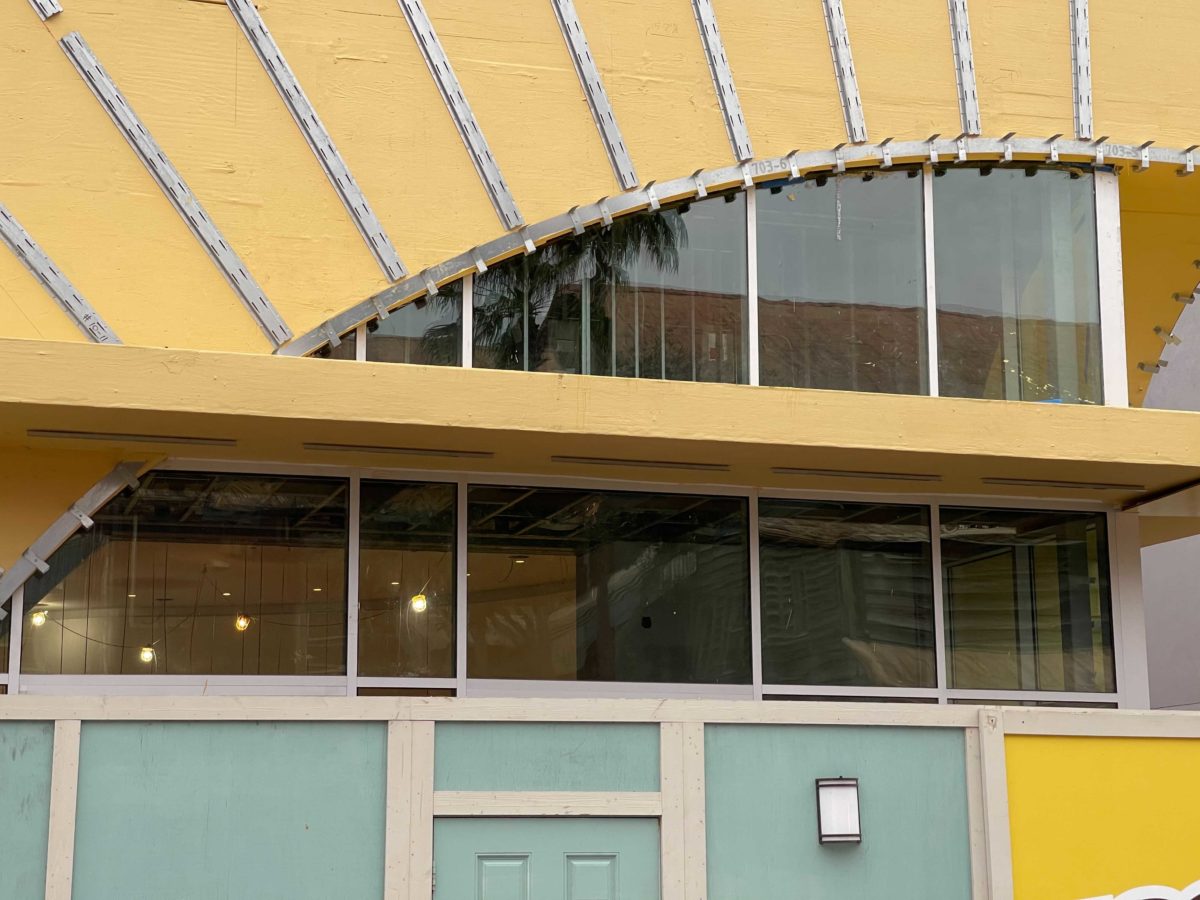 Most of the store’s front facade looks much like it has for just over a month. The metal framing will support the yellow panels. It will also hide a lighting system.