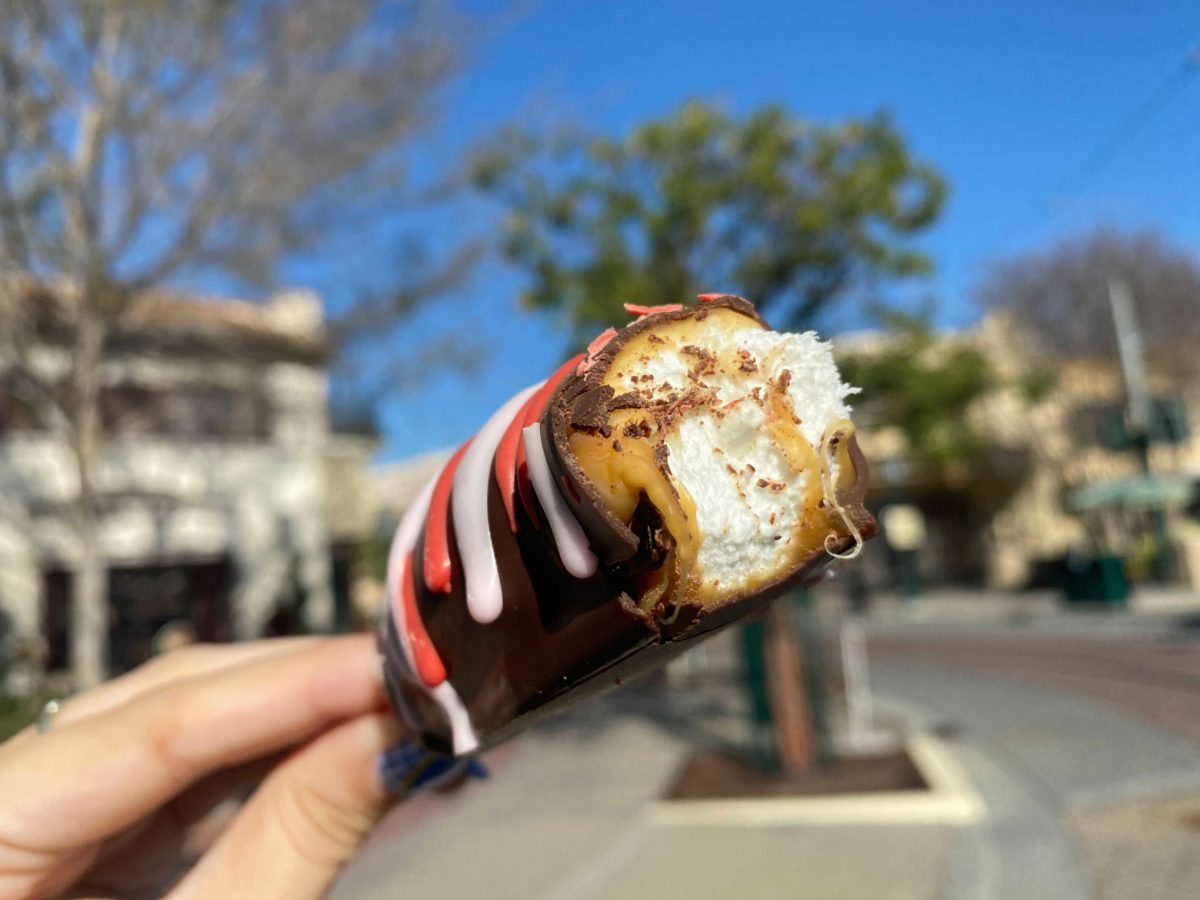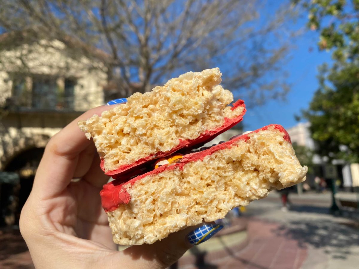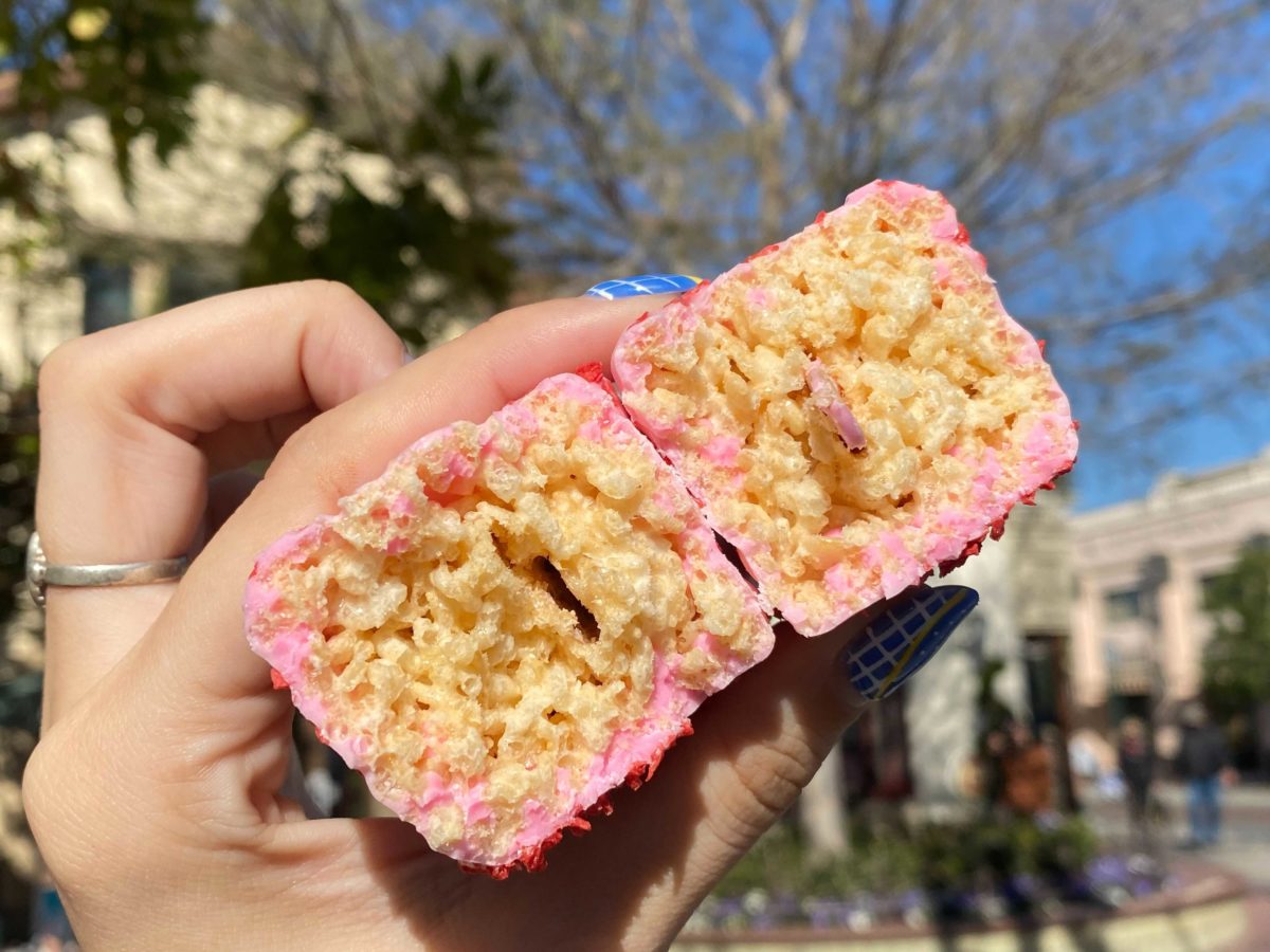 Much like the strawberry Minnie crispy, this treat is very dry and stale. I’m pretty sure if we threw this at the ground it wouldn’t break. There is no additional flavoring to the treat, but the red chocolate frosting is very sweet and makes for a cute Valentine’s Day treat. The best thing about this treat is most definitely its instagrammable appearance.