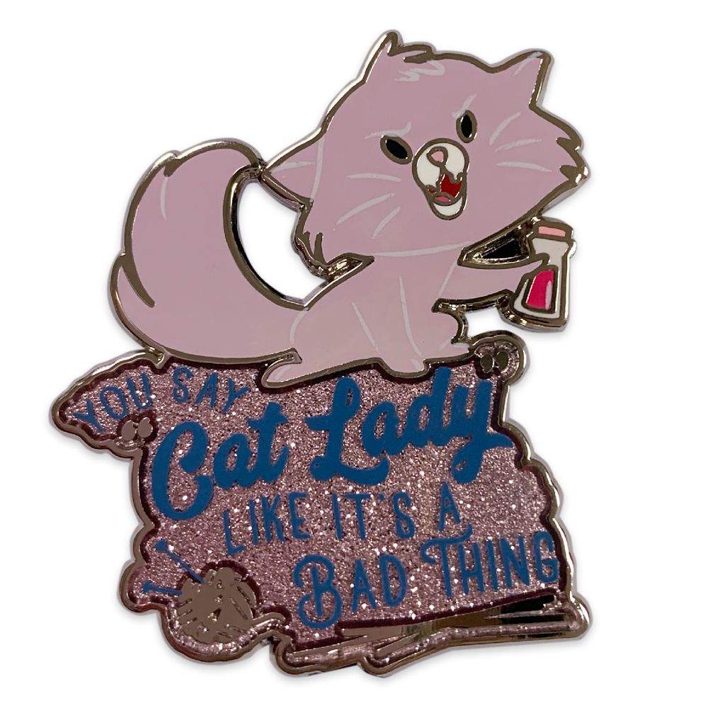 Yzma from The Emperor’s New Groove appears in her cat form with one of the collection’s signature phrases: “You say Cat Lady like it’s a bad thing.”