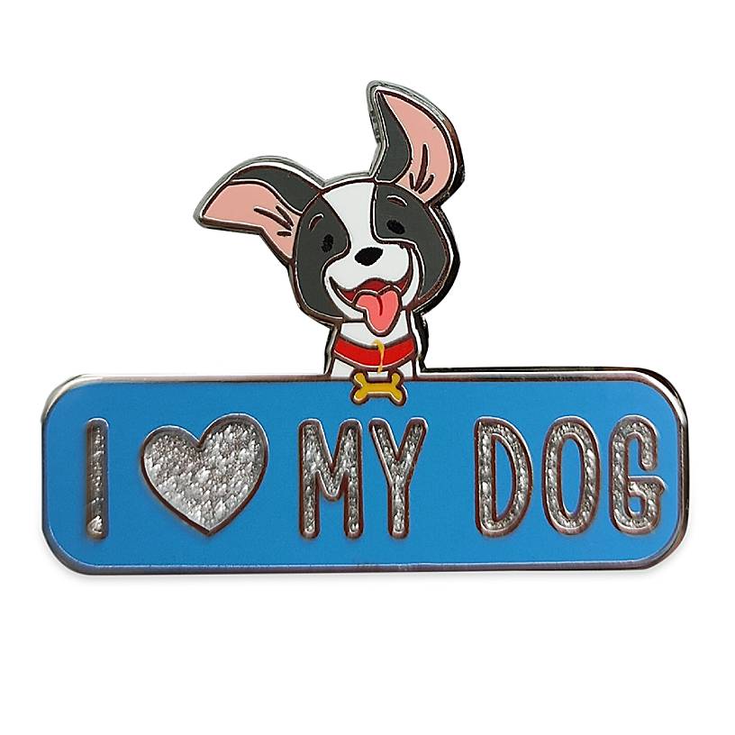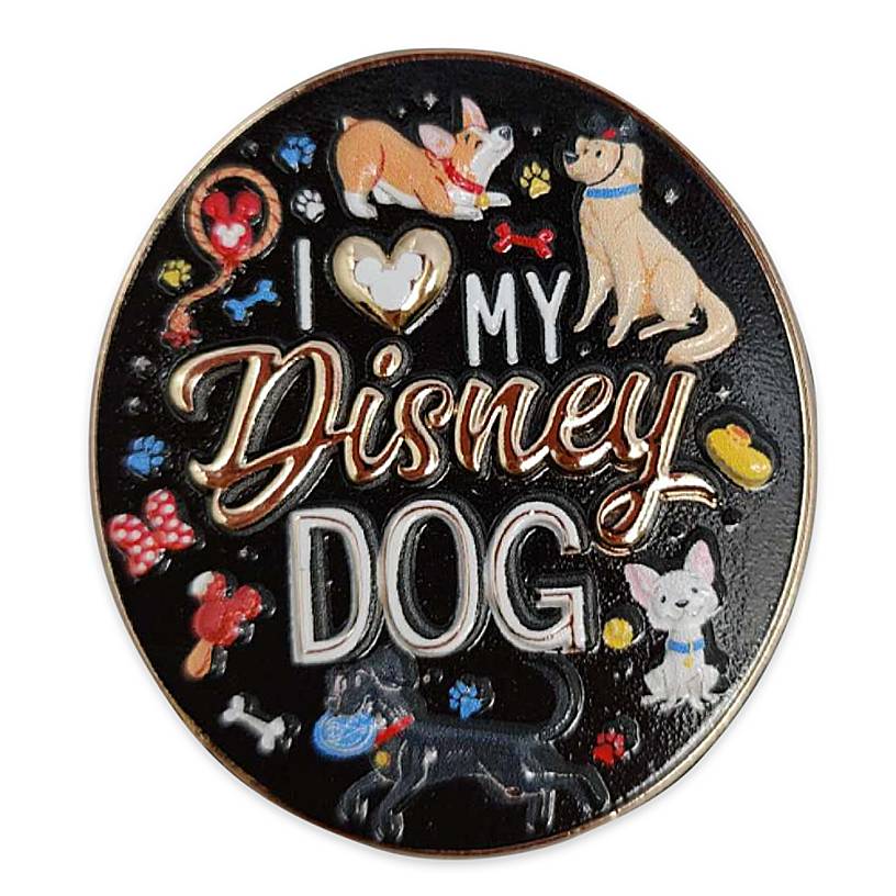 One pin says “I <3 My Disney Dog” alongside several generic dogs and toys.
