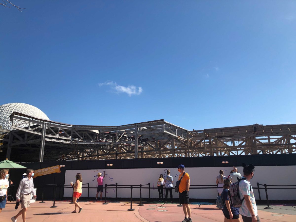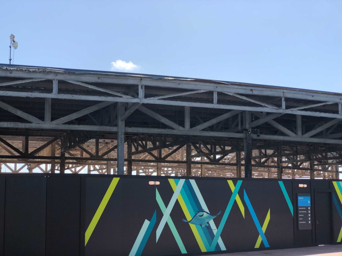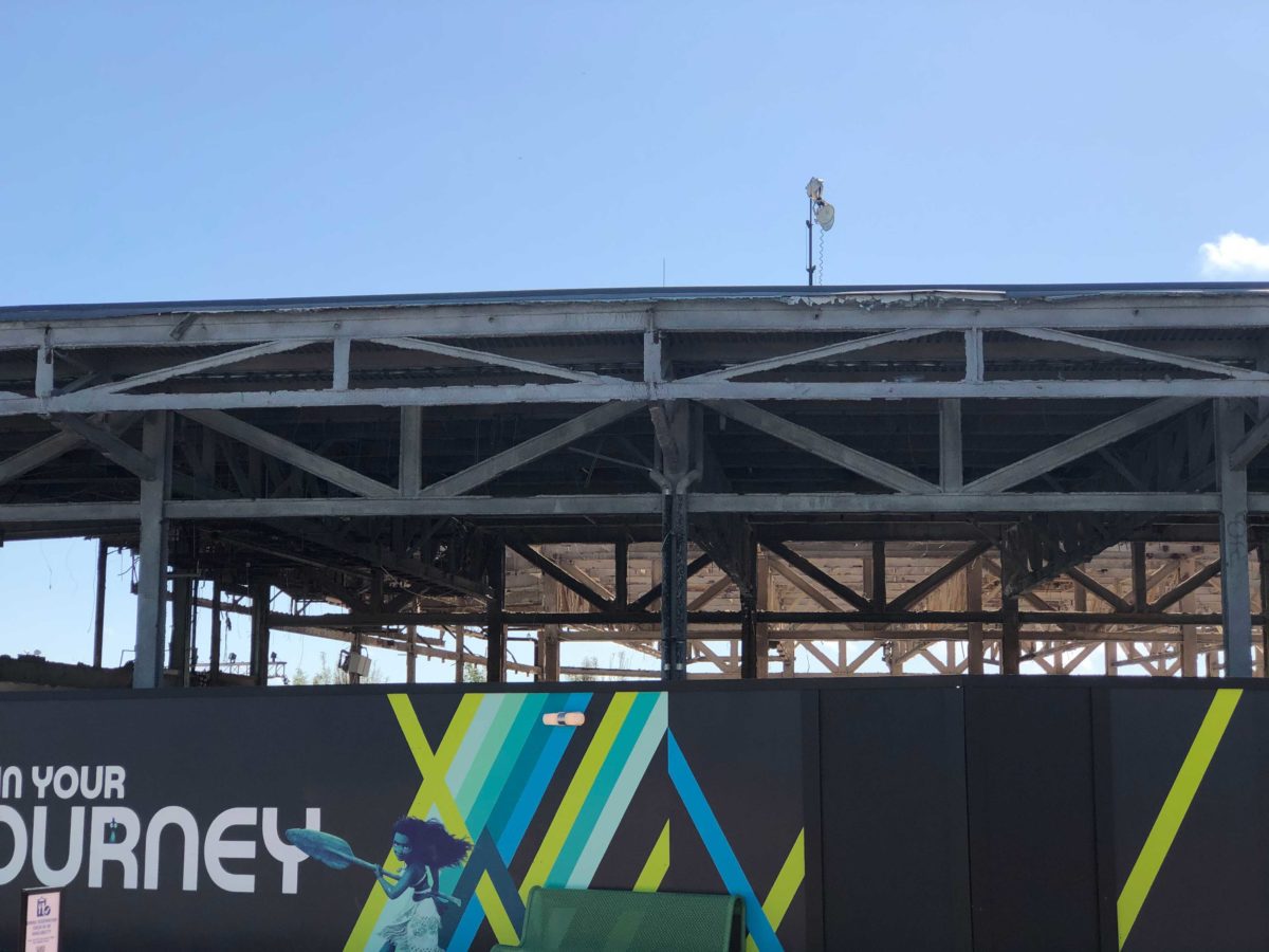A look above the construction walls shows framework still in place at what was The Art of Disney.