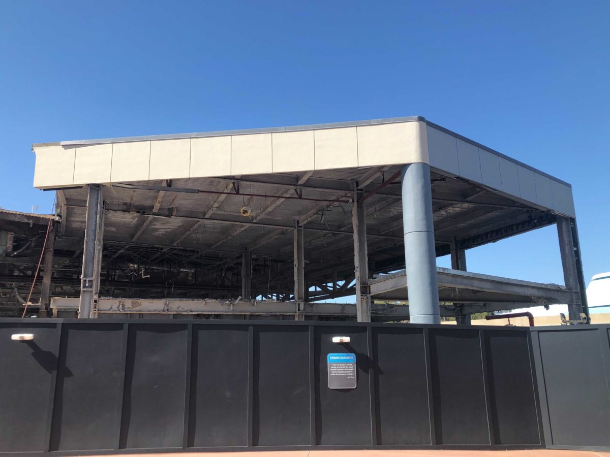 During our recent trip to EPCOT, we stopped by Innoventions West to see how the demolition of the building was progressing. Recently, we shared an aerial view that showed a significant portion of the roof had been removed. We also shared some ground view pictures.