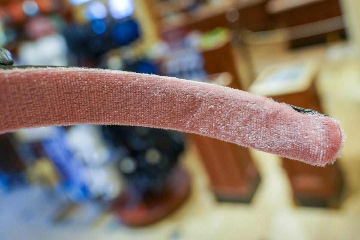 The base of the headband is a dusty pink that matches the pink in the bow.