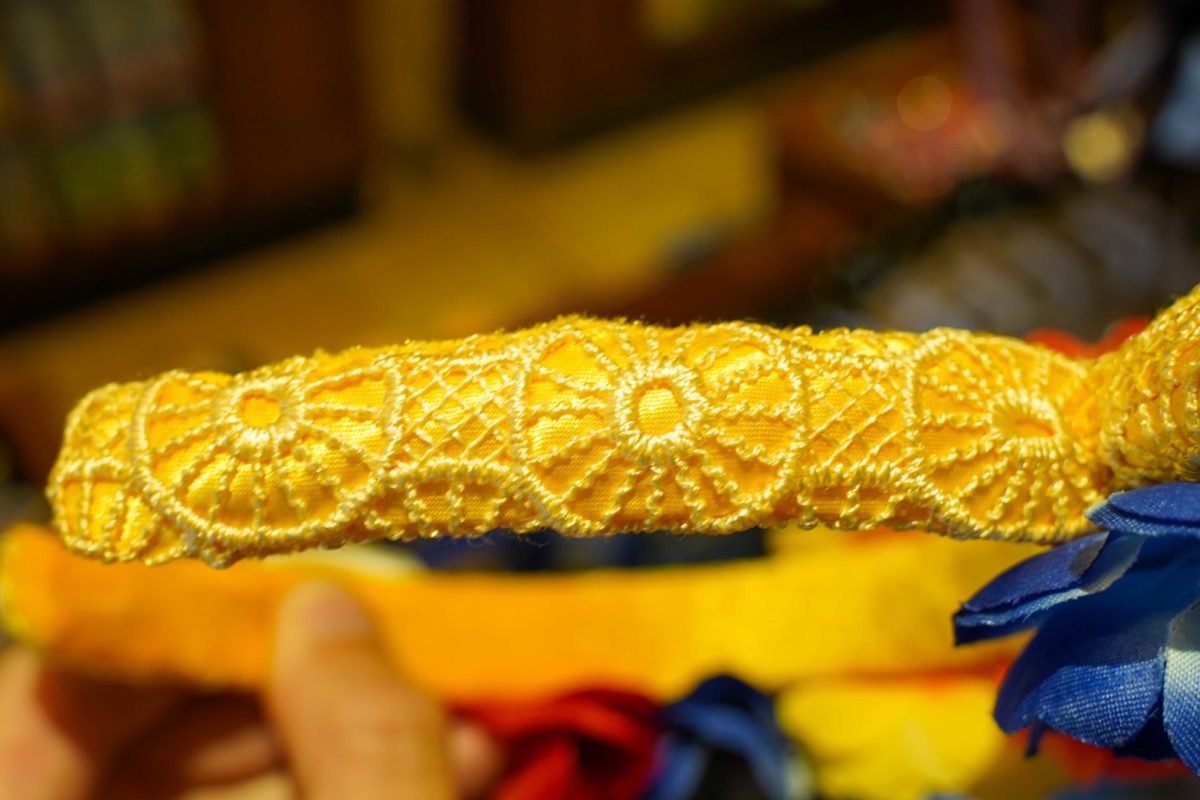 This yellow embroidery is carefully done throughout the entirety of the ear headband.