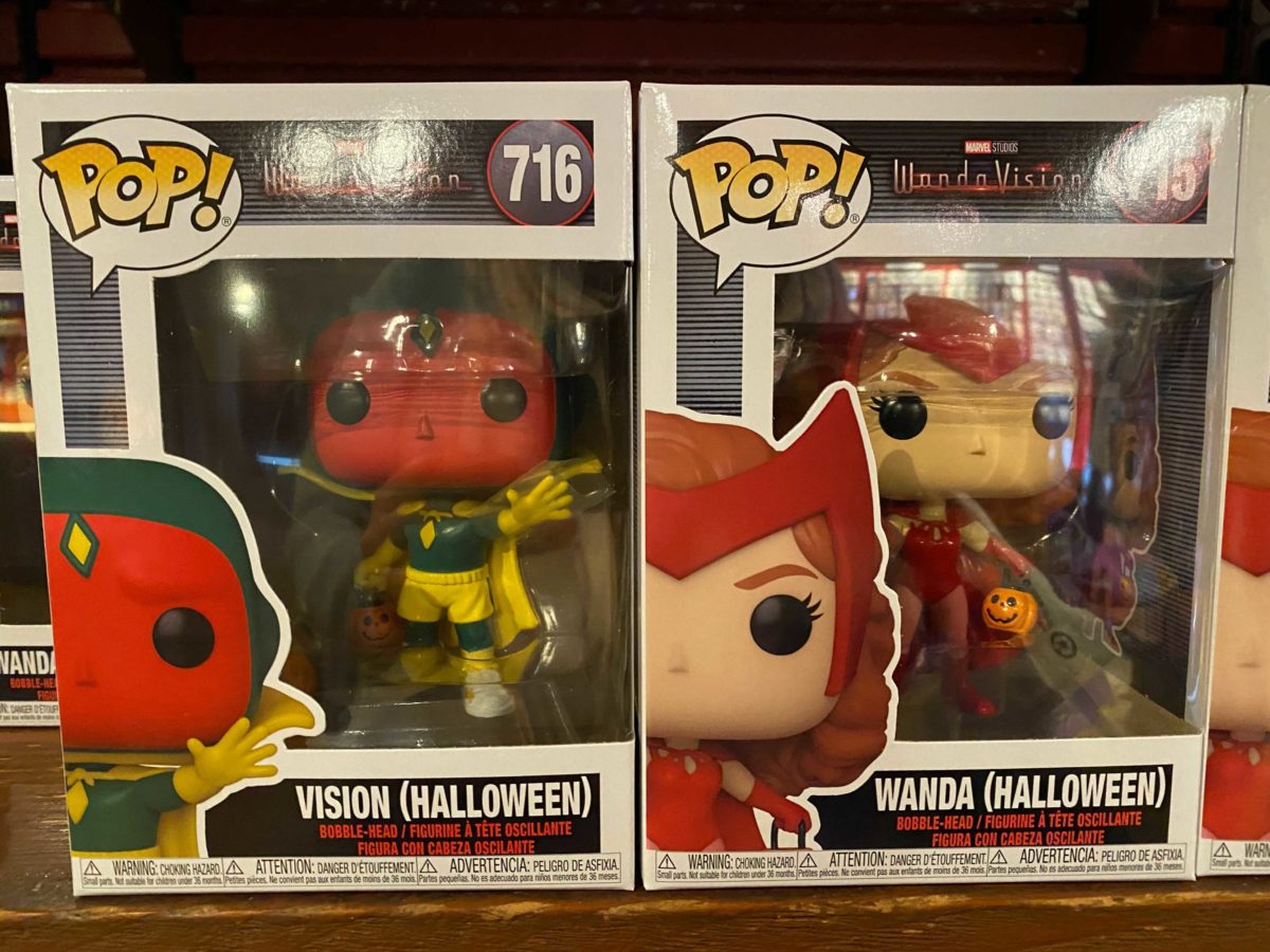 This adorable Funko Pop! duo was inspired by the latest WandaVision episode. Wanda and Vision are all dressed up for Halloween in a vintage look inspired by the comics.