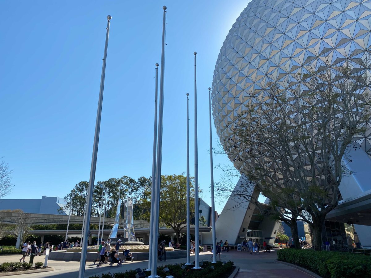 According to the concept art, the poles will hold flags with the EPCOT logo icon, but concept art isn’t always accurate.