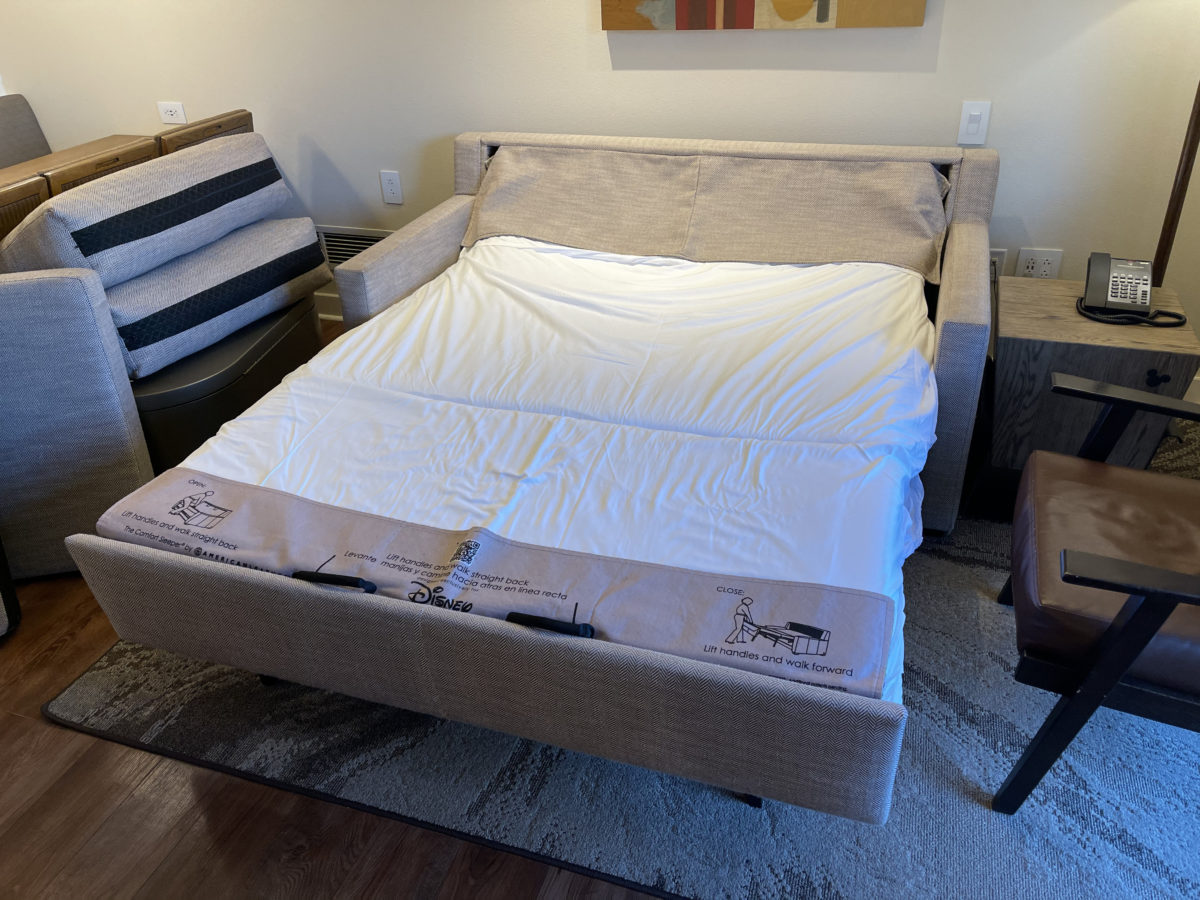 The sofa folds out into a bed, like most sofas in Disney resorts.