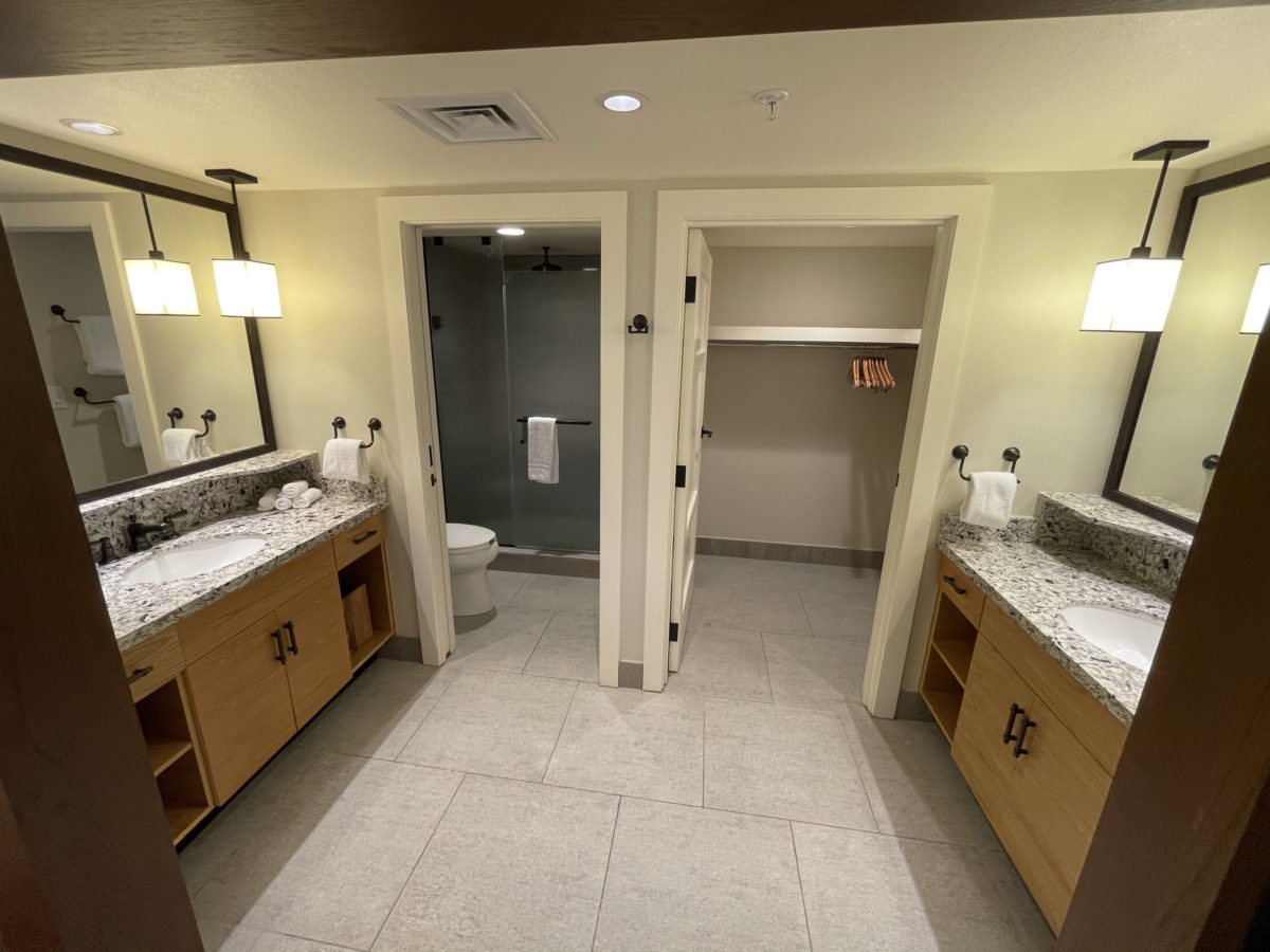 There are two sinks across from each other, so each person staying in the room has plenty of space.