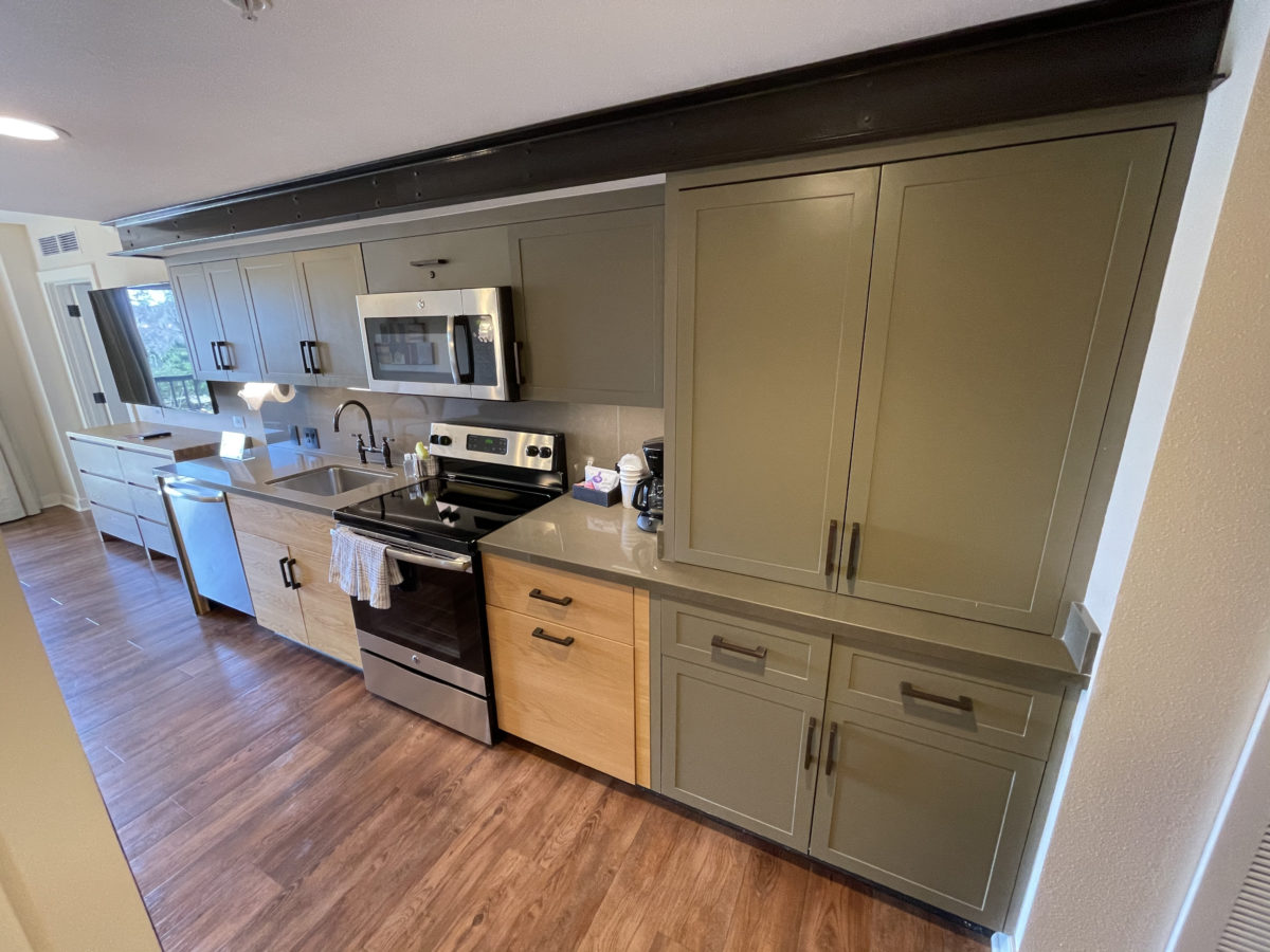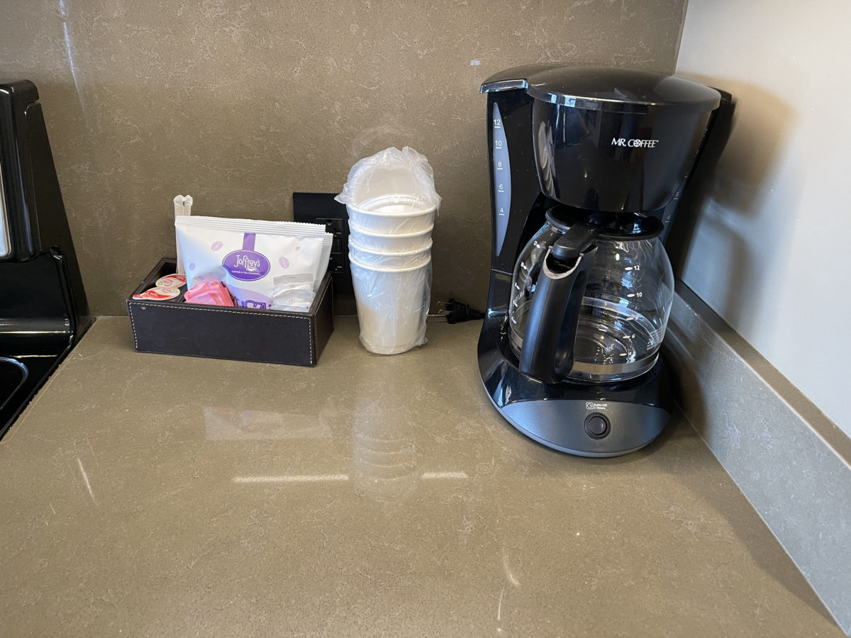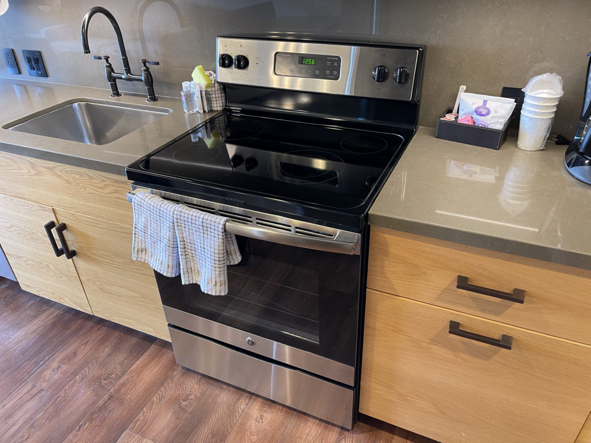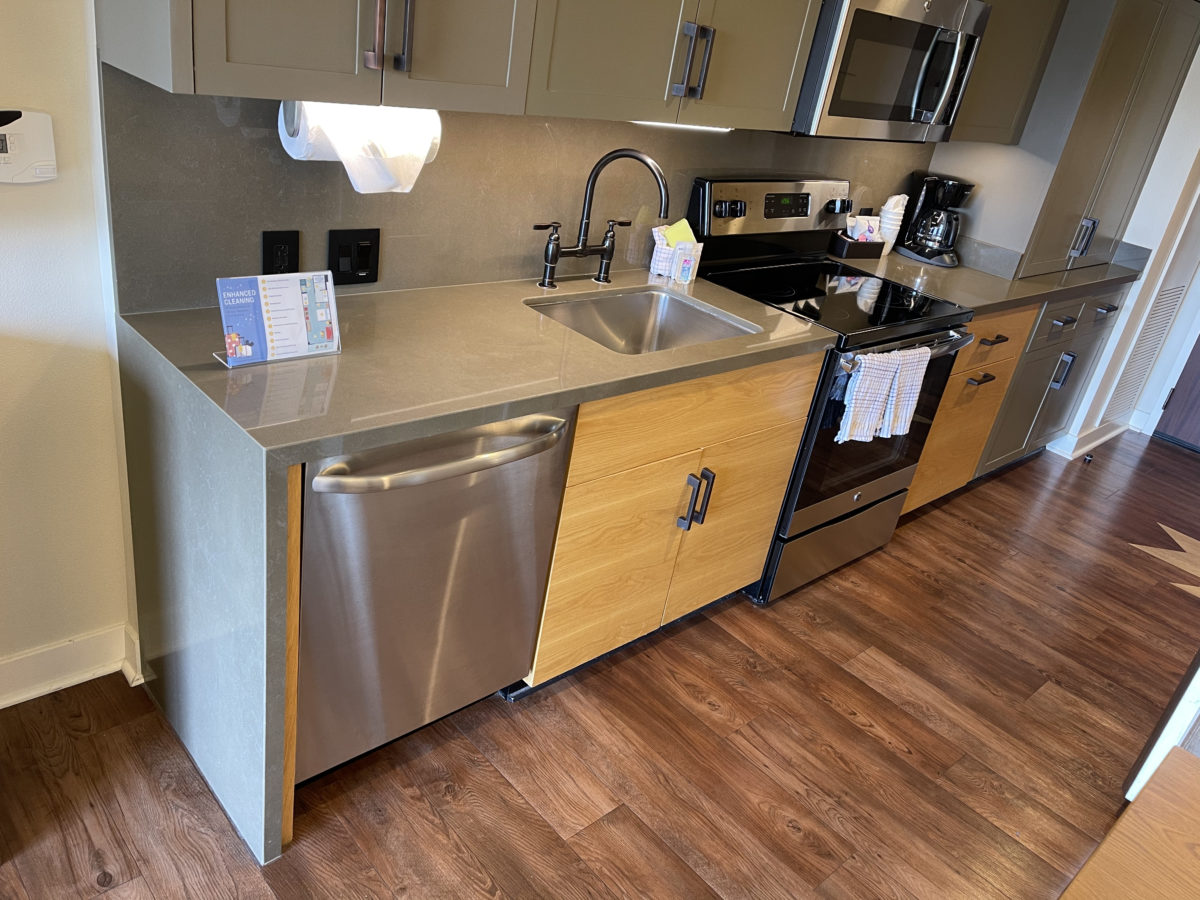 It’s a relatively small kitchen but does the job if you are making simple meals during your stay.