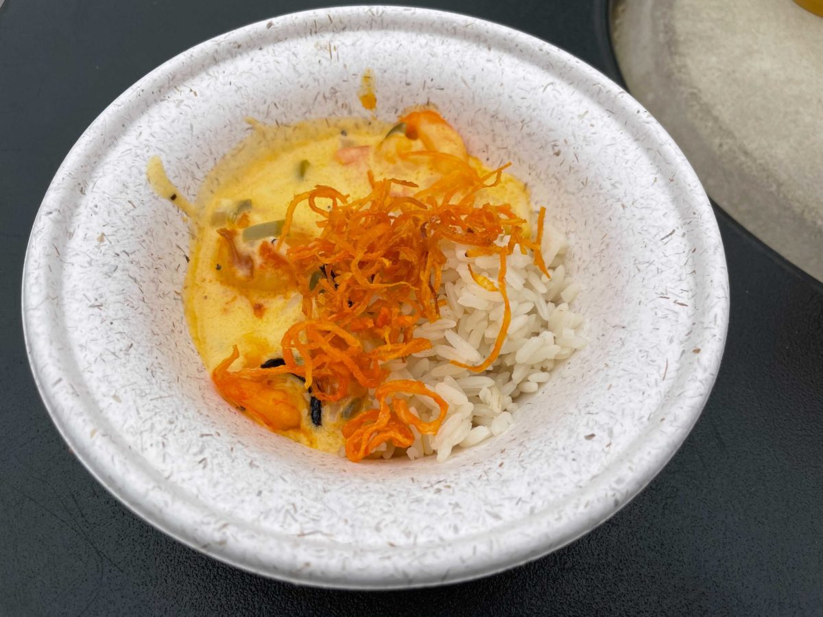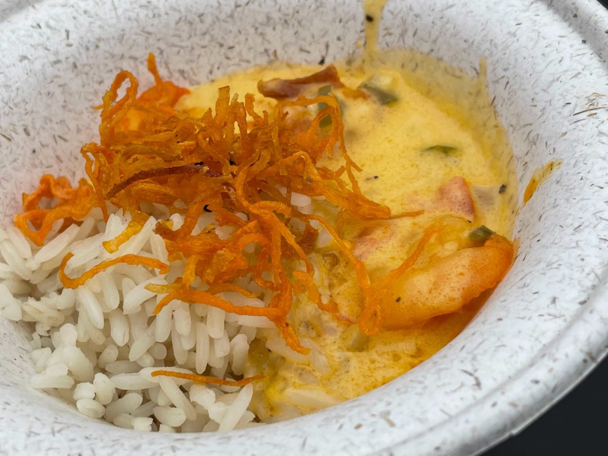 *NEW* Moqueca de Camarao: Shrimp coconut cream stew with white rice and sweet potato curls – $5.49