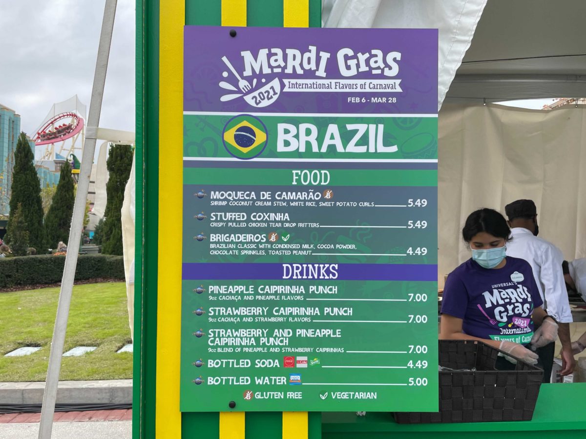 Menu for the Brazil Tasting Booth at the Mardi Gras 2021: International Flavors of Carnaval at Universal Studios Florida
