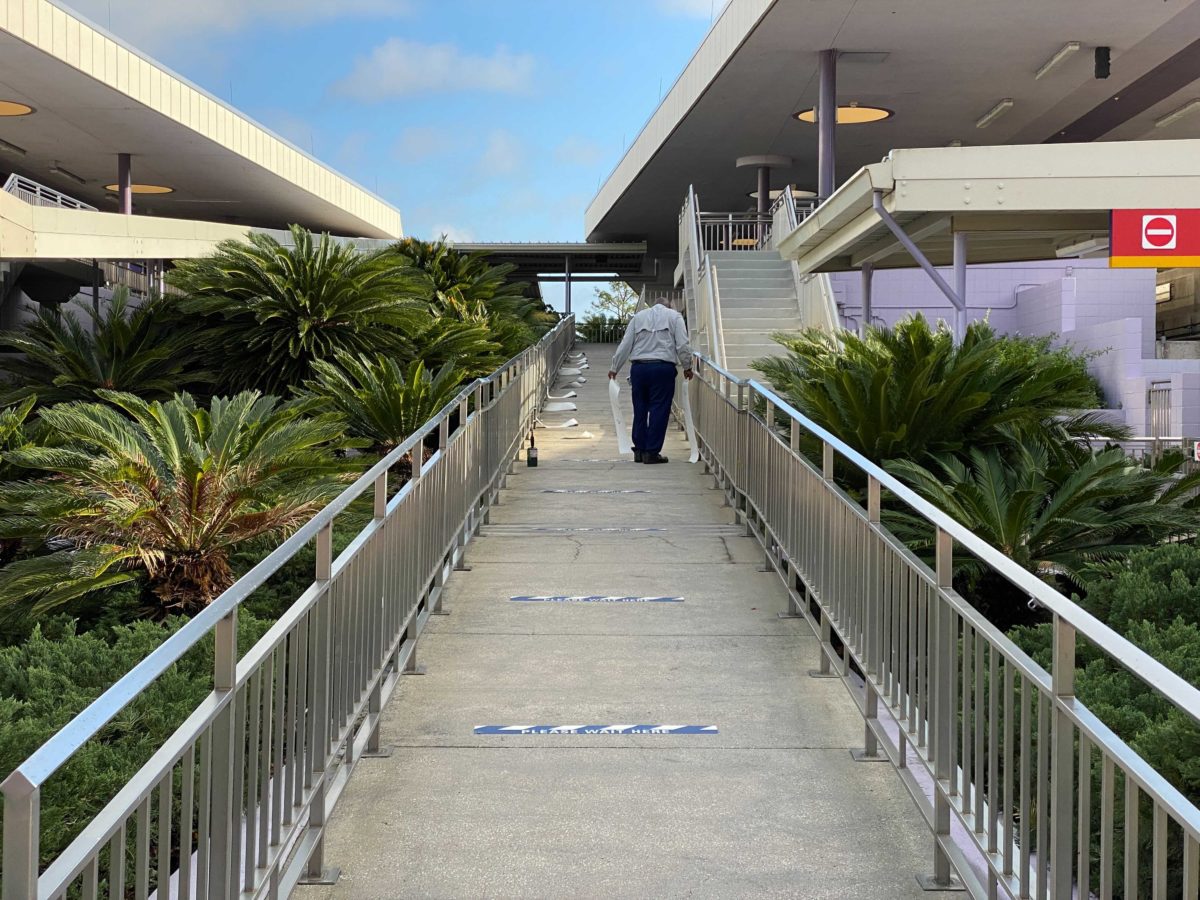 Cast members were seen placing new distancing markers at the EPCOT Monorail station in the Transportation and Ticket Center today, but this is to help with distancing for current extended queues for the Express Monorail.